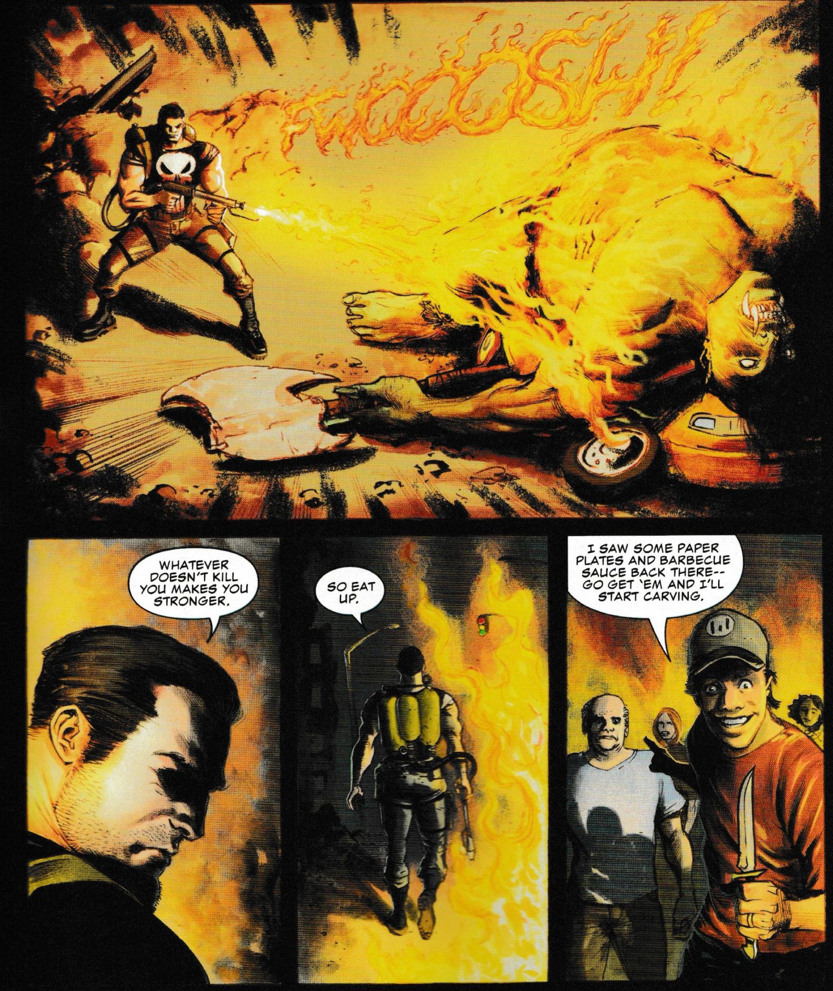 Has he never read Skrull Kill Krew? And monsters or not, is eating the corpses of sentient beings where we are at now? But the Punisher is still hunting his great white frost giant…
