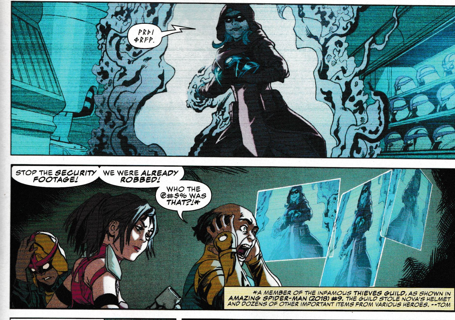 Champions #7 promised a War Of The Realms crossover issue, but, aside from Ms Marvel having stepped down from leadership, the comic is rather War Of The Realms-free, rather choosing to pick up on plot points from Amazing Spider-Man last year, over the location of Nova's helmet…
