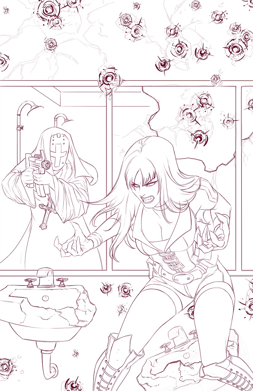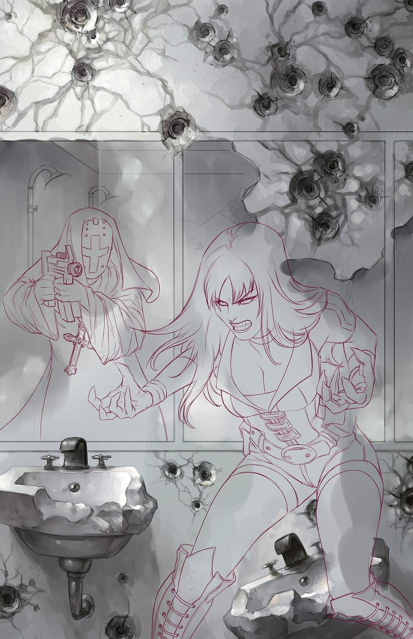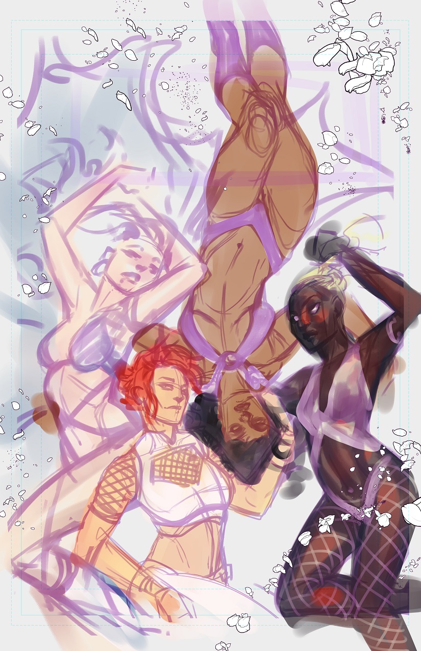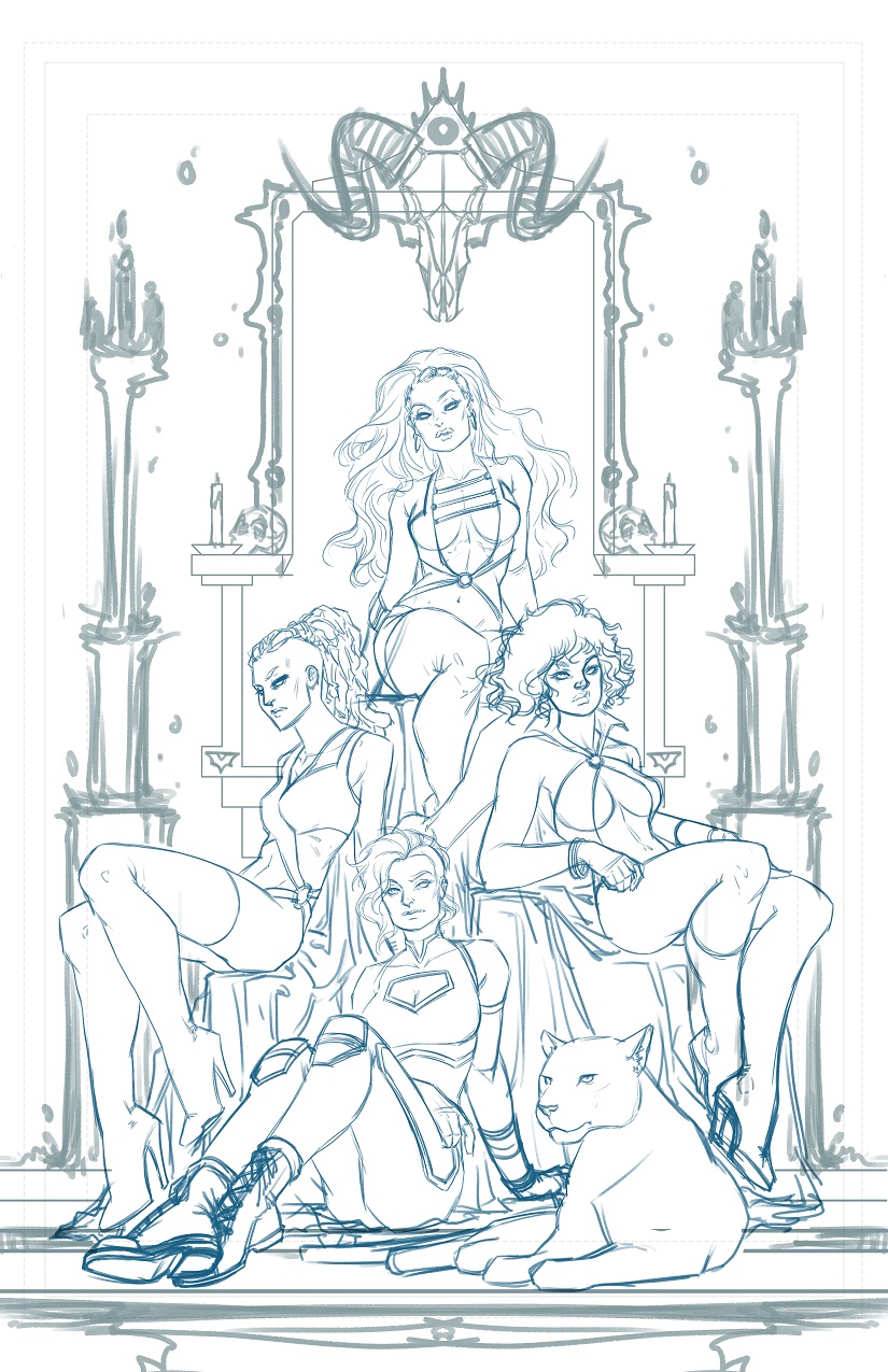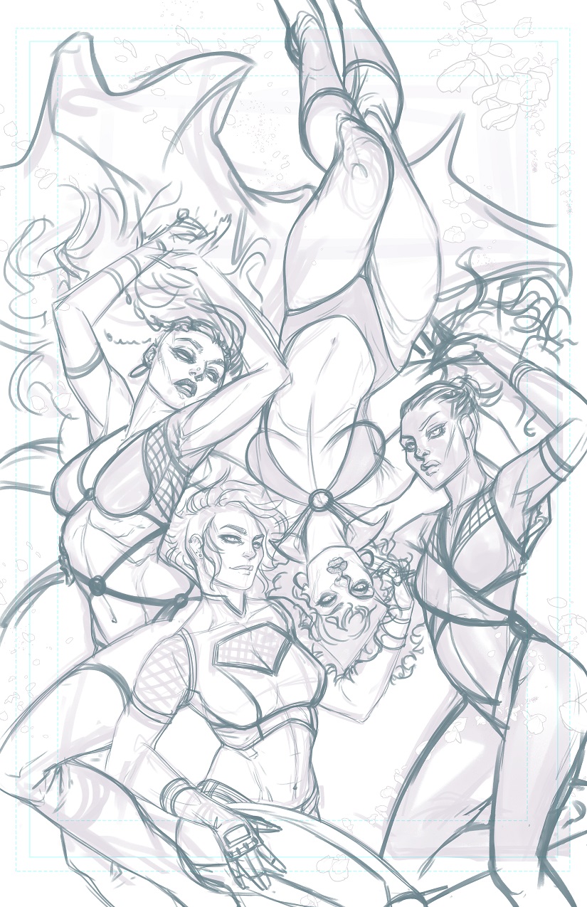 We love a good process breakdown for the covers of Meghan Hetrick. And here we have three for Dynamite Entertainment. When or even whether the comics will see the light of day, we don't yet know. But here we go.