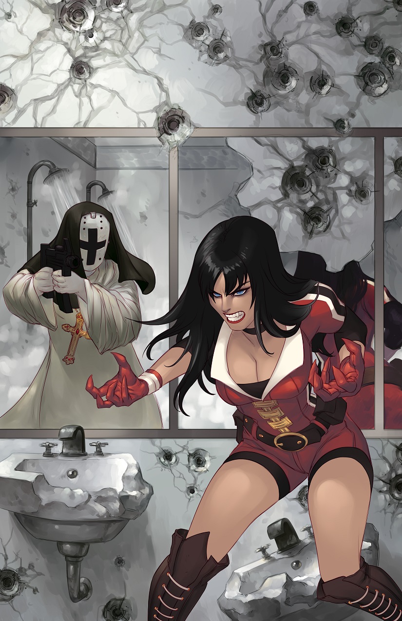 Four women are lured to rural Georgia as part of a mysterious scheme to defend an impoverished farming town which finds itself under siege by zealots. But this isn't just any impoverished farming town, and these aren't just any four women. The all-new Draculina, Pantha, Nyx, and Chastity have been brought together in Ashthorne in an effort to avert all-out war against nearby Sacred, Georgia. But Ashthorne has a deadly secret, Sacred has a deadly purpose, and lurking in the shadows is Lilith, the immortal sorceress and mother to Vampirella. Written by Vampirella's own Christopher Priest, drawn by Gabriel Ibarra in his mainstream debut, and featuring a special contribution by superstar Jae Lee.In Shops: May 27, 2020 SRP: $3.99