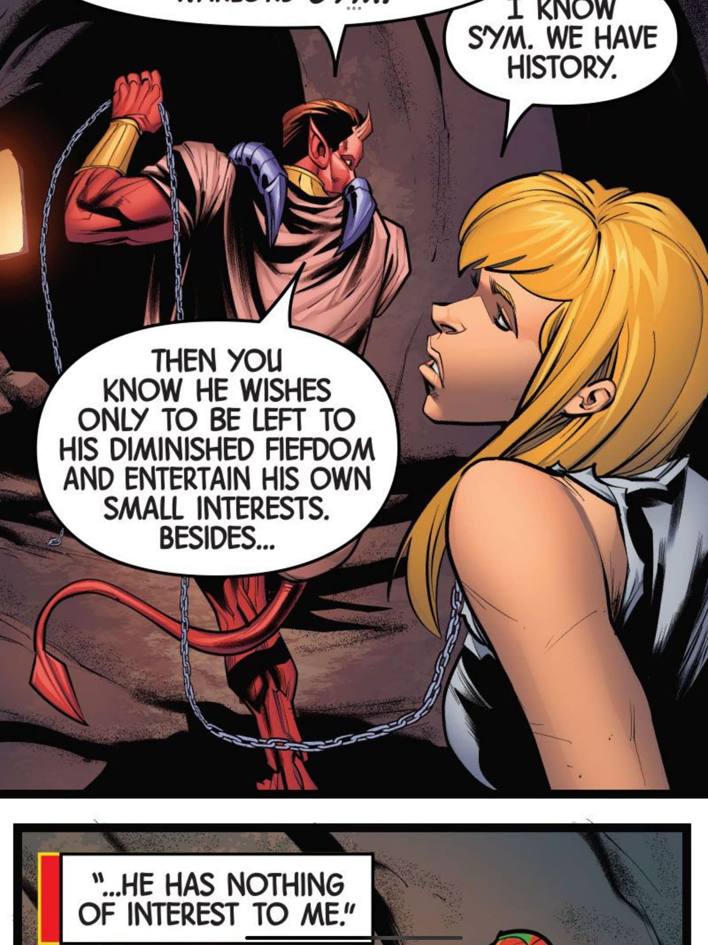 But in Limbo, it is Illyana who is pulling strings, even from a position of subservience. She is igniting a war in hell, exploiting the jealousies, envy and suspicion that are Limbo's currency.