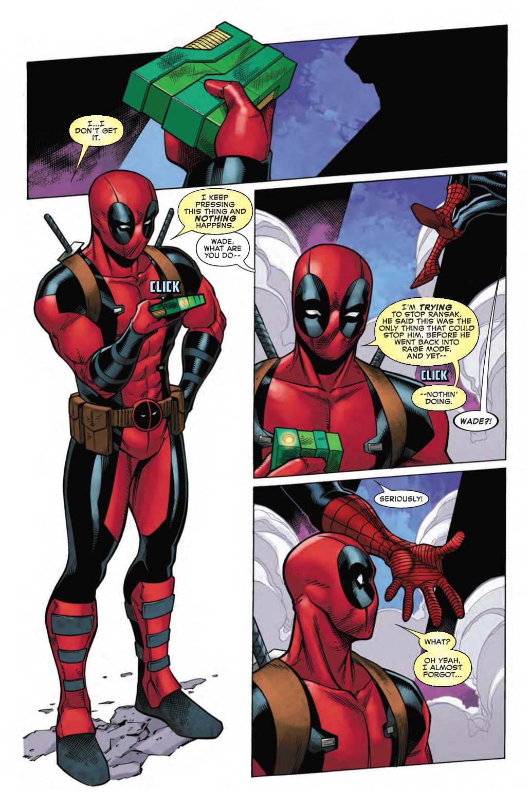 Deadpool is a little bit distracted in a preview of next week's Spider-Man/Deadpool #44. Caught up in both a flashback and trying to determine how to work a McGuffin, Deadpool isn't paying attention to pressing matters at hand…
