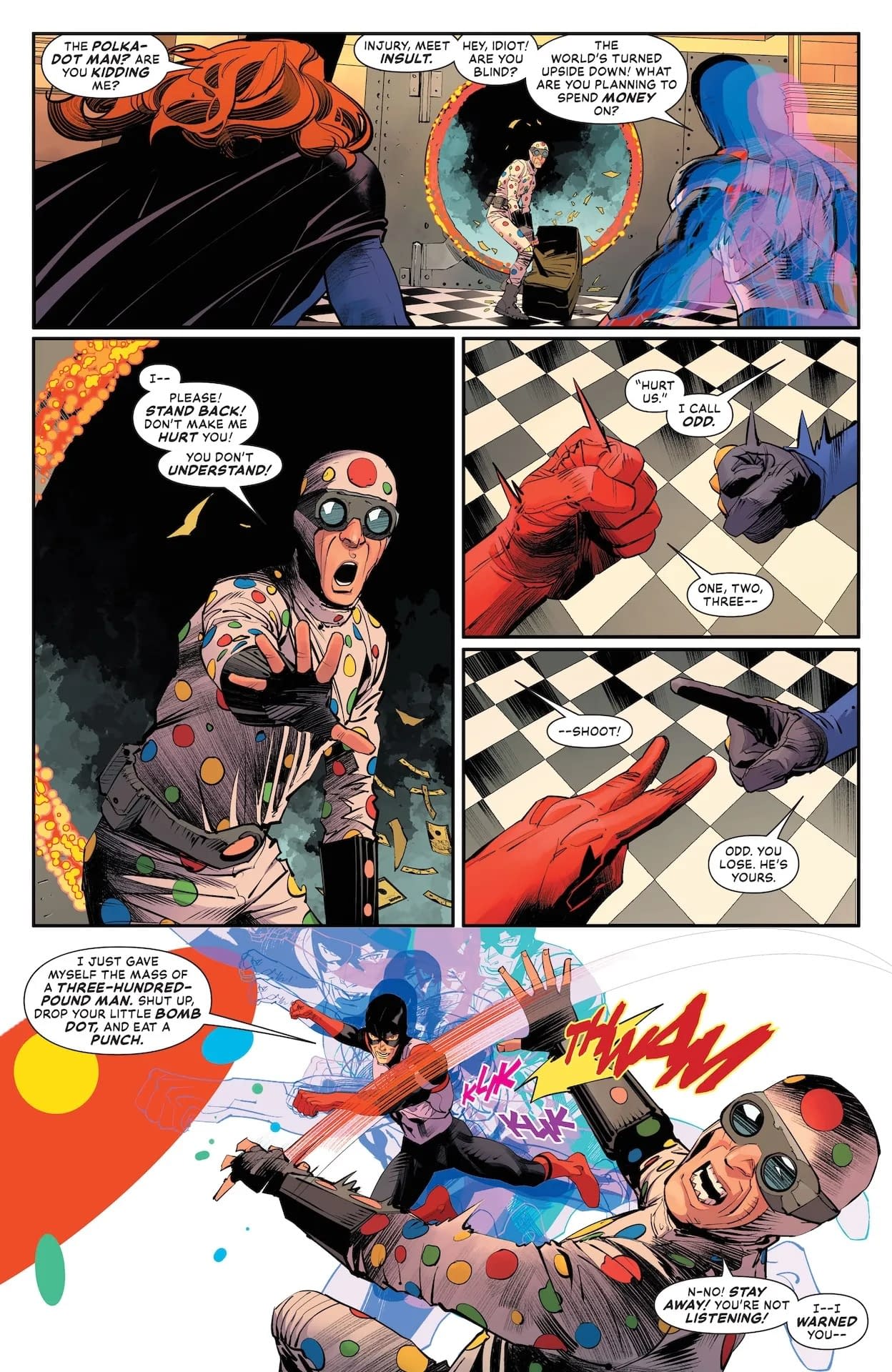 It does look like there may be more than just a bank robbery here, and Polka Dot Man may be more or a victim that an instigator. Especially with what happens next.