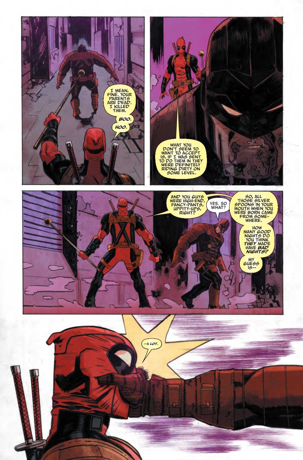 Normally, comic books stick to rewriting the origins of the superheroes only from their own universes, but Deadpool has never been one to follow rules. So in the current ongoing Deadpool series, Deadpool recreates the origin of Batman by killing the parents of a young child in an alleyway, but this time, with a twist. Deadpool says that Goodnight's parents deserved to die in this preview of Deadpool #12!