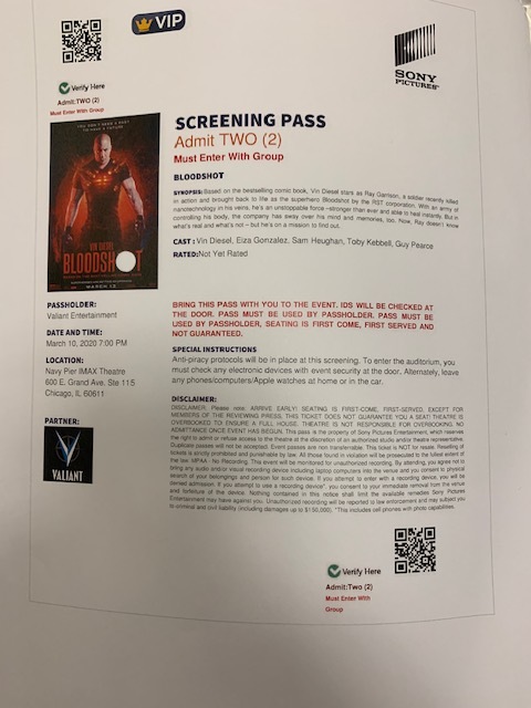 However, they did have a great give away for all in attendance including Bloodshot Tshirts, movie posters and for locals, free tickets to the first screening at Navy Pier.