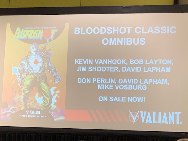 He suggests it's like a big dumb action movie but with a great story, thinks of Bloodshot as a modern-day working-class hero, and thinks of listening to Bruce Springsteen as he writes the book. A great chance to hear about the next Bloodshot series but again a bit shocking no Valiant booth, no real promotion for the movie. It seems like this would be a great chance to pump up a film that I personally look forward to seeing in the theatre open weekend.