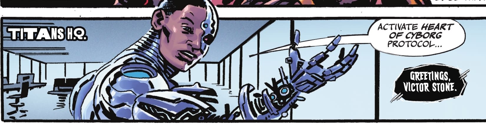 And Cyborg, returned to life, has a new ability of his own. Maybe he planned for this back in DC's K.O. #1?