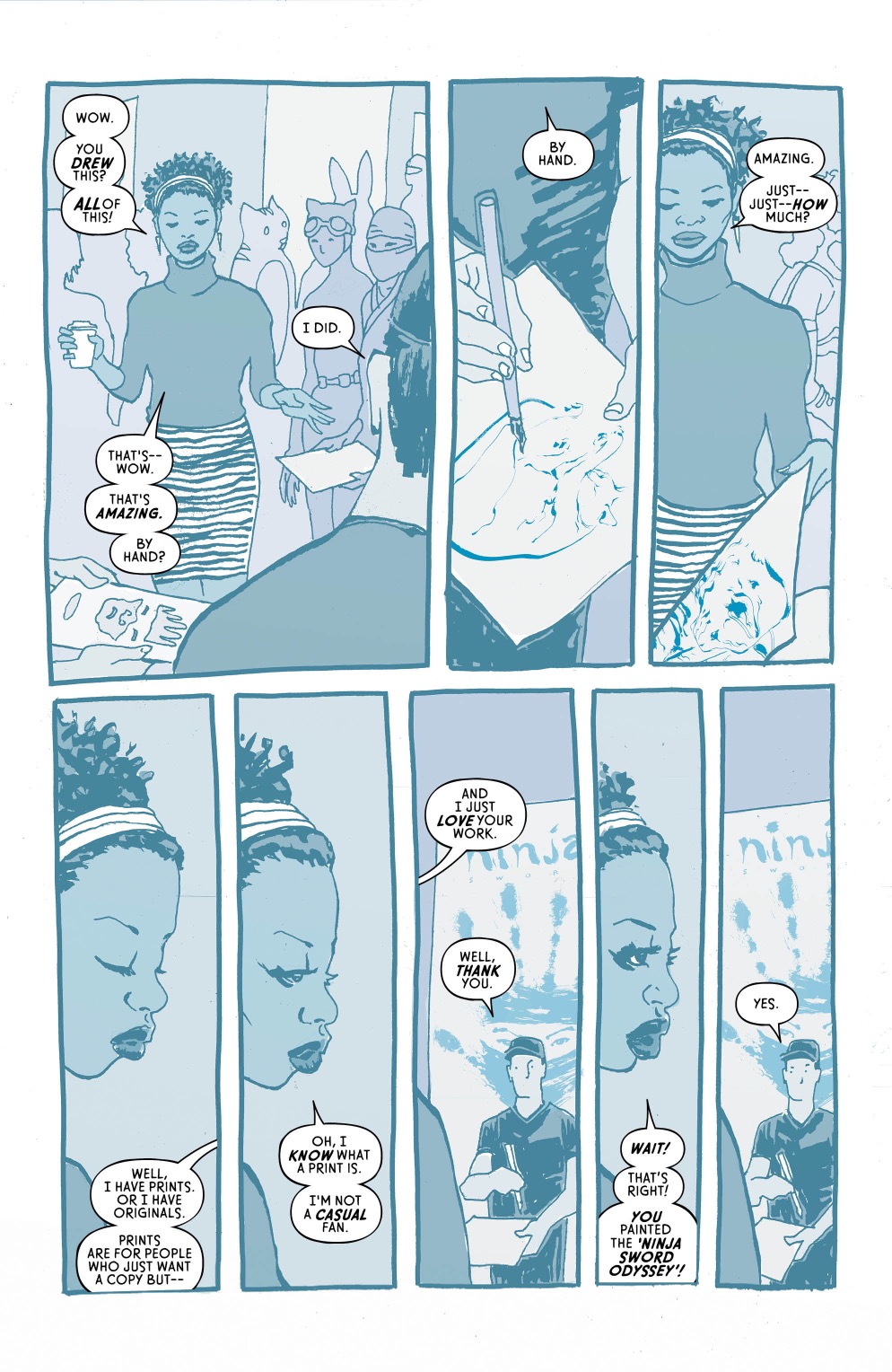 I'm trying to give David all of the opportunities to do all of the things that he can do. It works great because with David, we can show the comic book that Max is making. The one you see in the first issue is a beautiful indie comic that you can tell was a hit comic. Later, we'll see another comic he's made that's a soulless piece of shit that he thought was going to be a big hit, but it wasn't. So, I had to tell David, 'Now, I want you to make a purposefully bad cash-grab comic.'