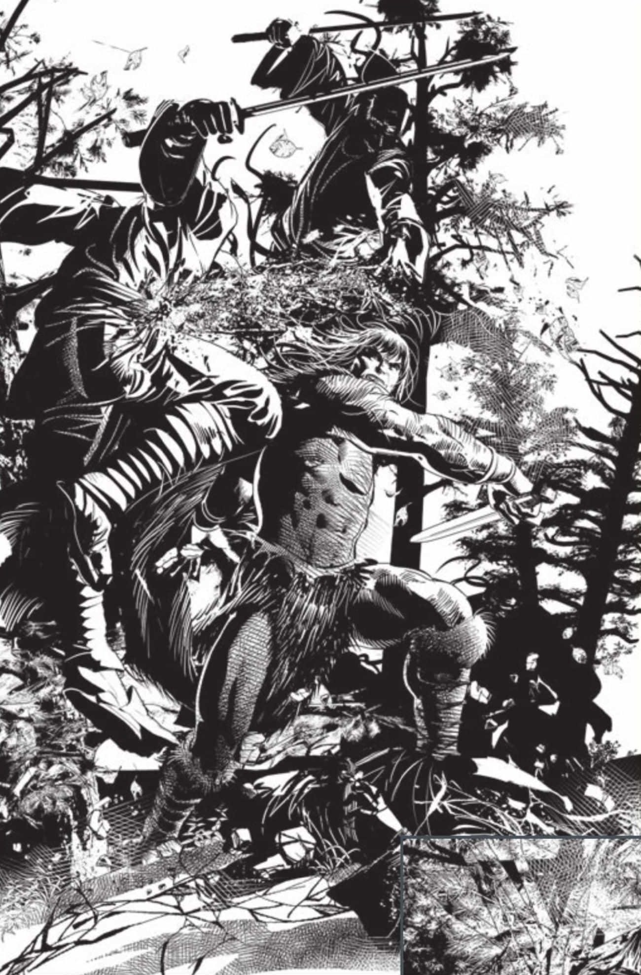 Which then sees Wolverine coming upon Conan and the sliced up ninjas…