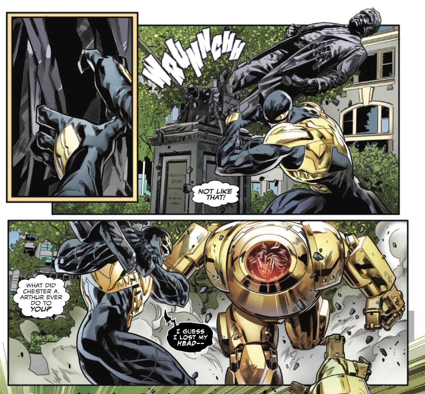 Chester A Arthur was the 21st president of the United States, serving from 1881 to 1885. Assuming the presidency after the assassination of President James Garfield, Arthur's administration implemented harsher restrictions on migrants entering from abroad. And Venom is, of course, a literal illegal alien. Of course, Mary Jane has another issue…
