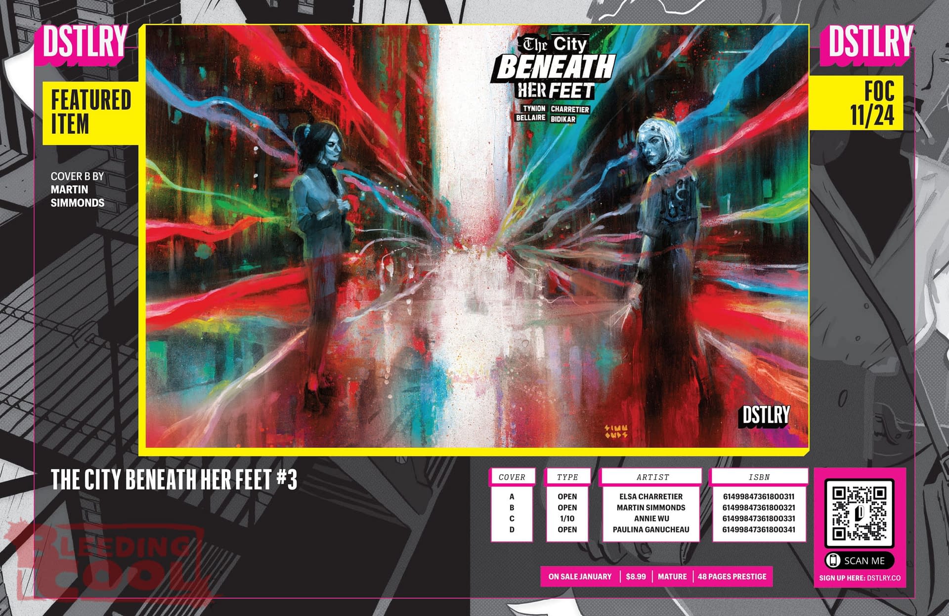 Dstlry's January 2025 solicitations include the finale of a new favourite comic of mine, White House Robot Romance #3 by Chip Zdarsky and Rachael Stott. Another finale for James Tynion IV and Elsa Charretier's The City Beneath Her Feet #3. And then a hardcover collection of Brian Azzarello and Eduardo Risso's, The Blood Brothers' Mother.