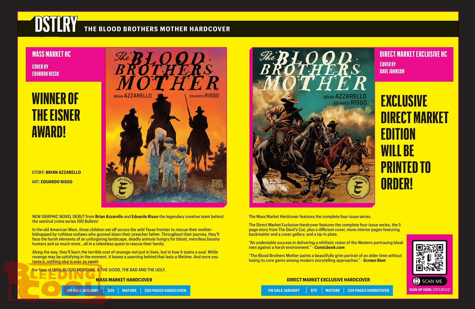 - Brian Azzarello and Eduardo Risso's The Blood Brothers' Mother arrives as an Eisner-winning hardcover