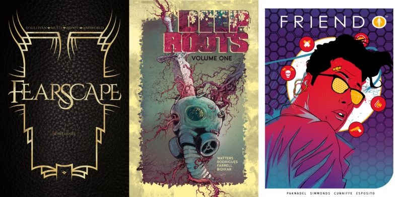 But we'll also be getting collections of the first books, These Savage Shores by Ram V and Sumit Kumar, Friendo by Alex Paknadel and Martin Simmonds, Deep Roots by Dan Watters and Val Rodrigues, and Fearscape by Ryan O'Sullivan and Andrea Mutti.