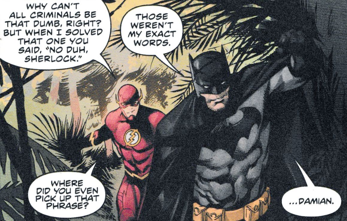 As well as Batman not swearing, now but reminded that he said a naughty word in the past. Taught to him by Damian, Kids eh?