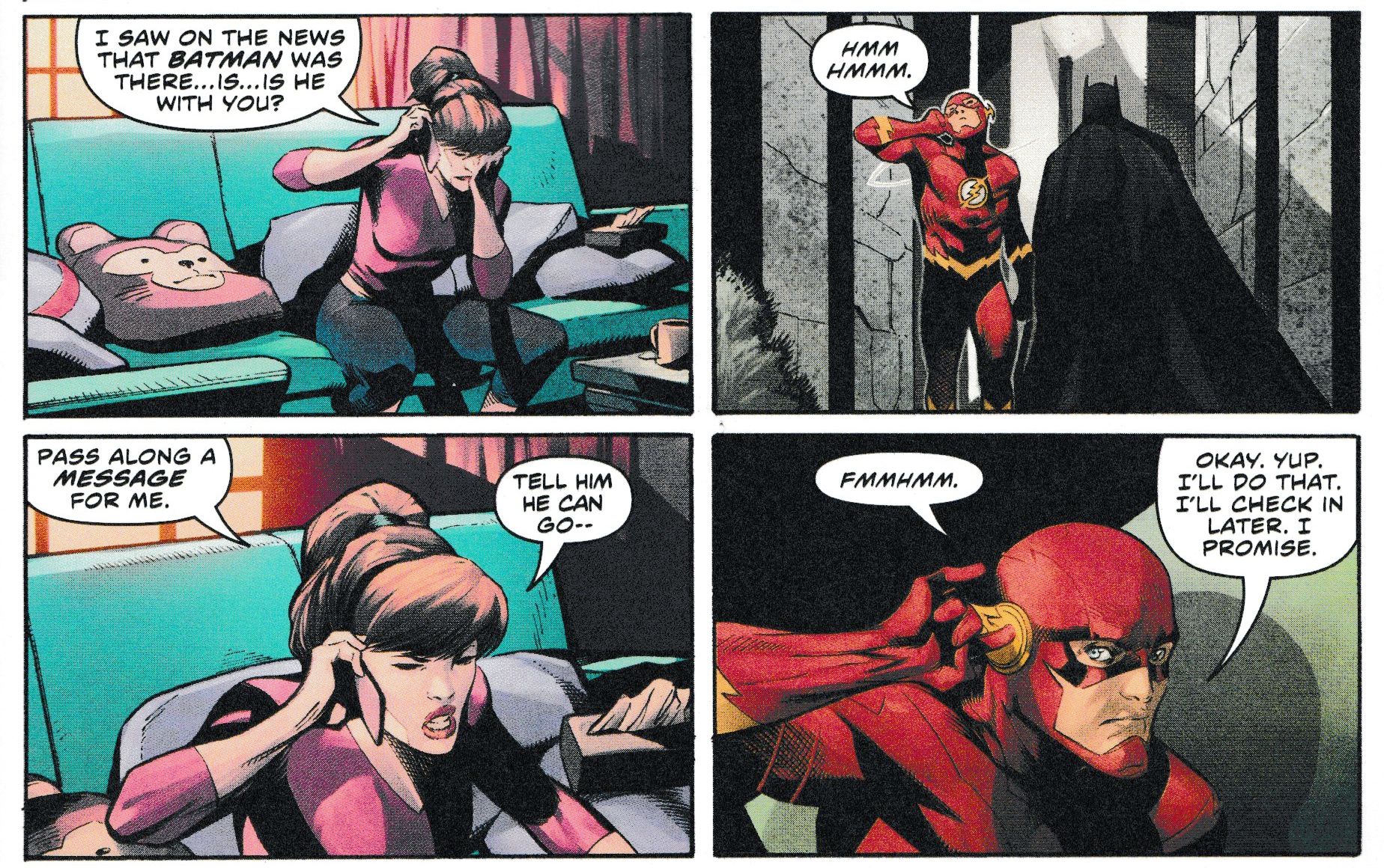 So in today's Flash #64, we see Linda West have some words for Batman. Words we don't know. But we can really, really guess at.