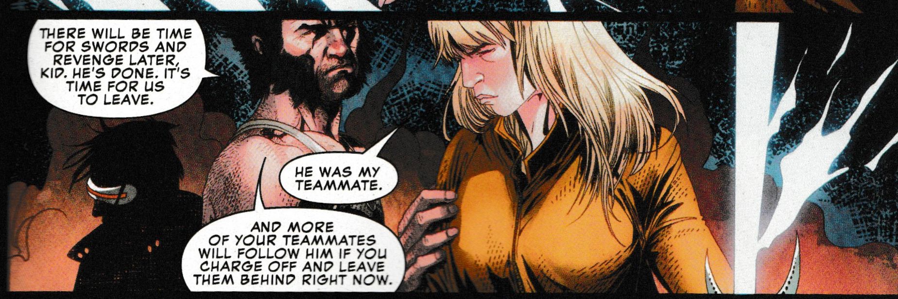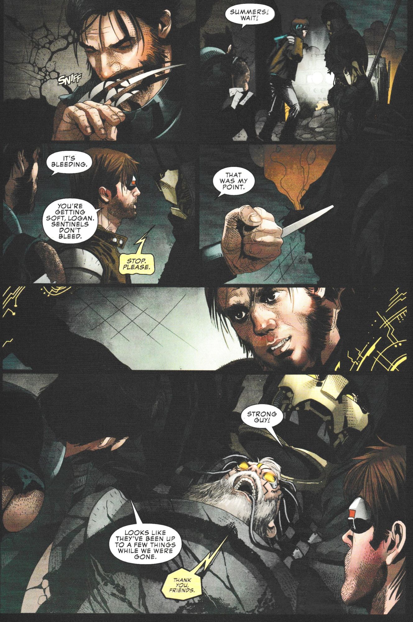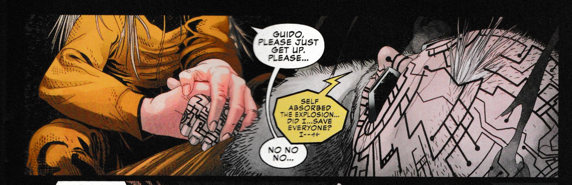 Wolverine… did you just stab Guido? Strong Guy? Created by Peter David and Marvel CCO Joe Quesada back in X-Factor back in the early nineties? But don't worry, he survives.