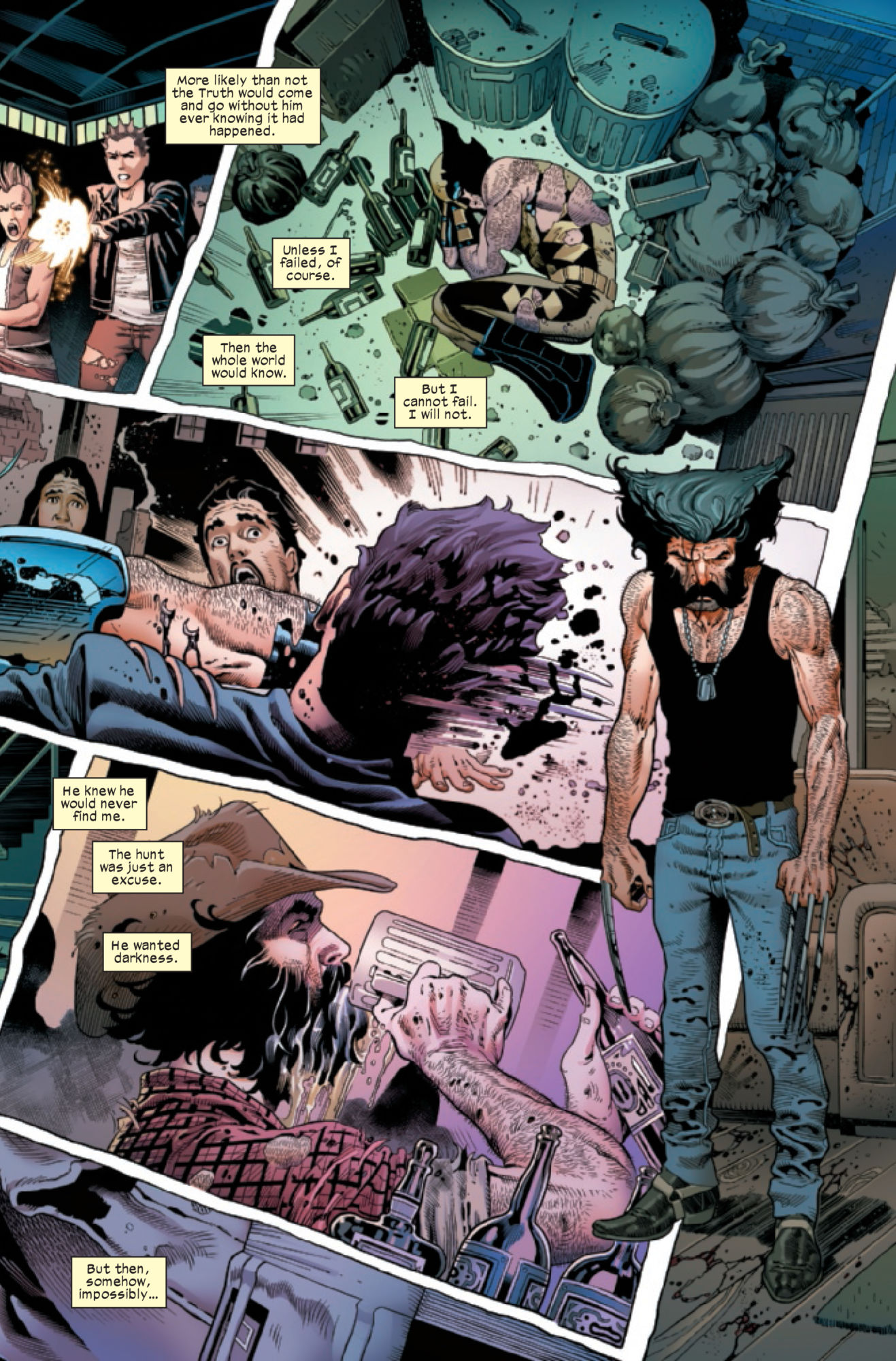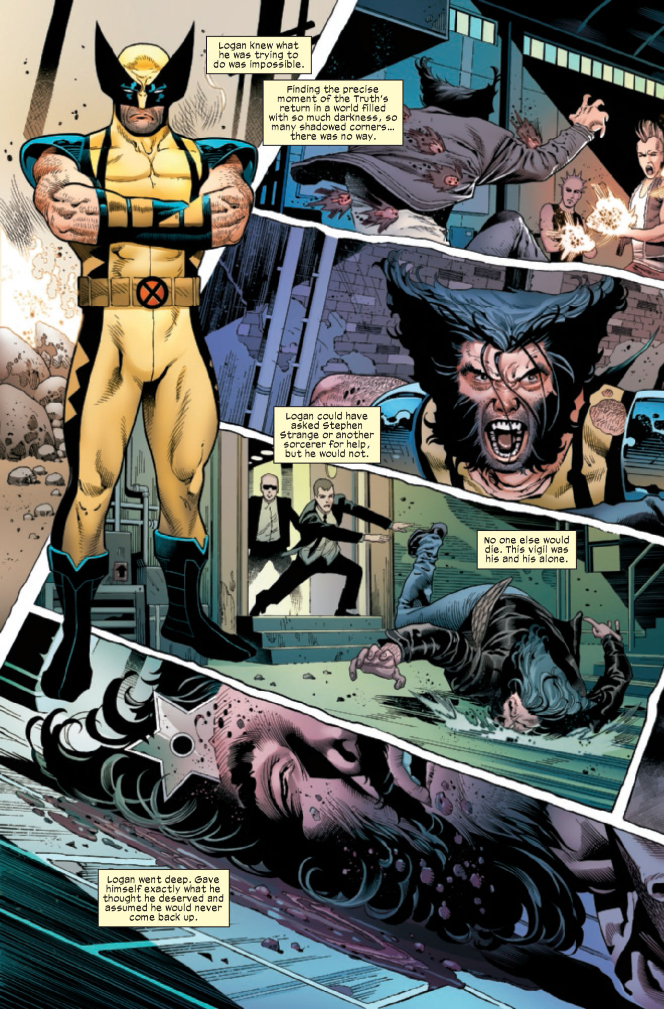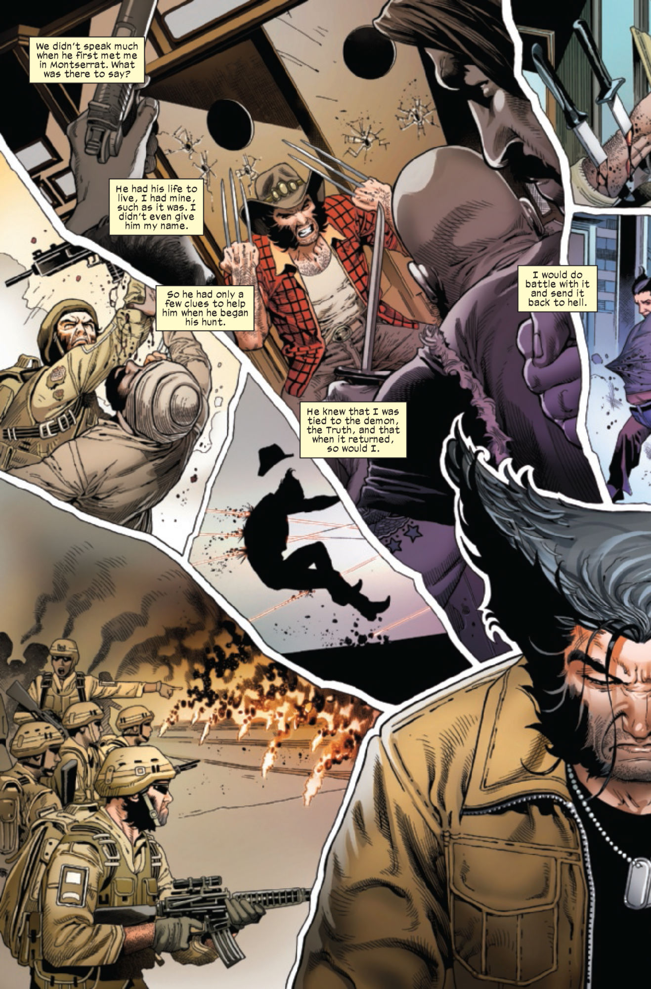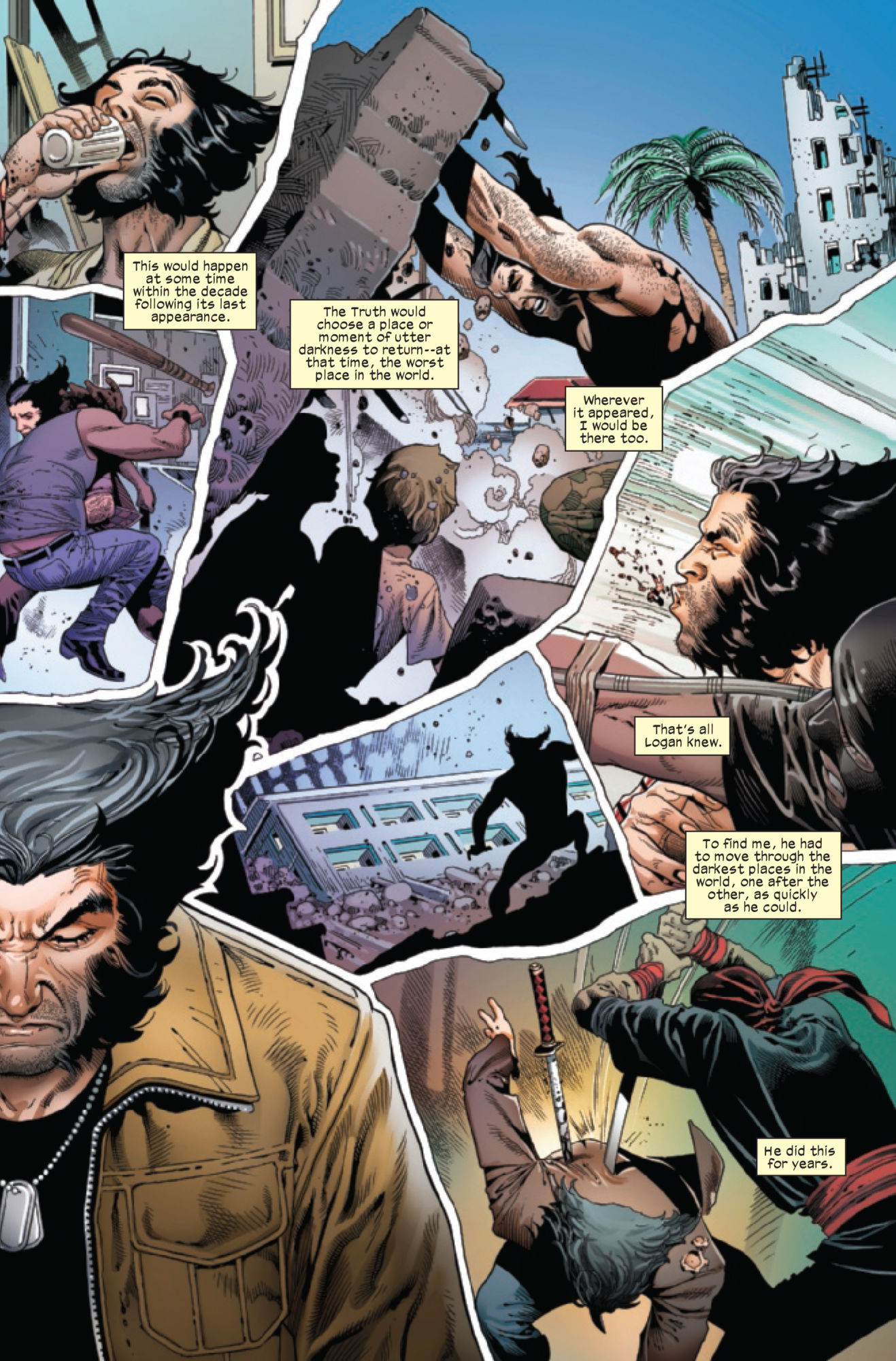 In The Vigil, Wolverine has been fighting the demon Ron Killings once per decade, every decade since the 1940s. The story, originally ostensibly in continuity though seeming less so considering the major changes made to Wolverine's history, including getting a bunch of X-Men killed in the 90s and having a daughter (with a woman he met as a child – yuck), not to mention the fact that the stories play out in real time, not Marvel time. In any case, in Marvel Comics Presents #7, The Vigil gets to the 2000s, and since The Truth appears at some of the most terrible moments in human history, it seems natural to assume that this decade's appearance will be at the World Trade Center attack on September 11th, 2001.