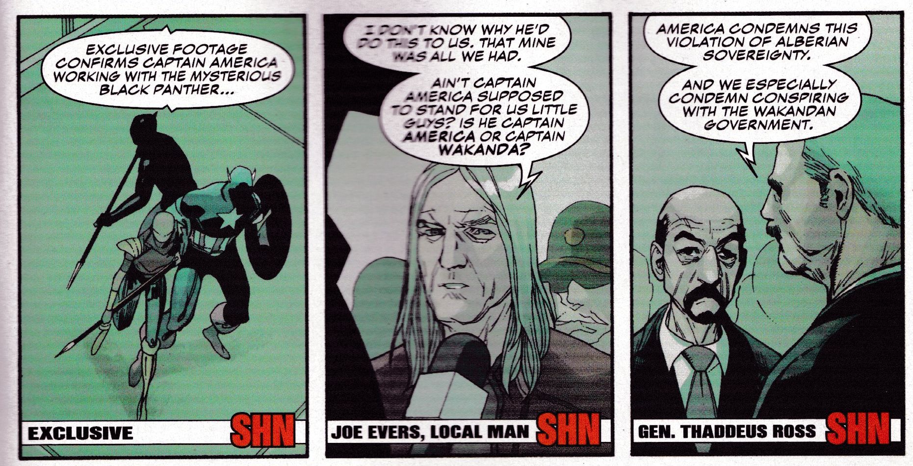 While in Captain America #5, also out today, the media is turning against him for just hanging out with Black Panther.