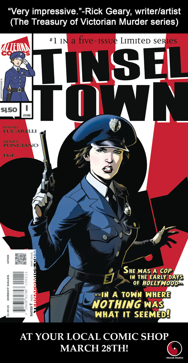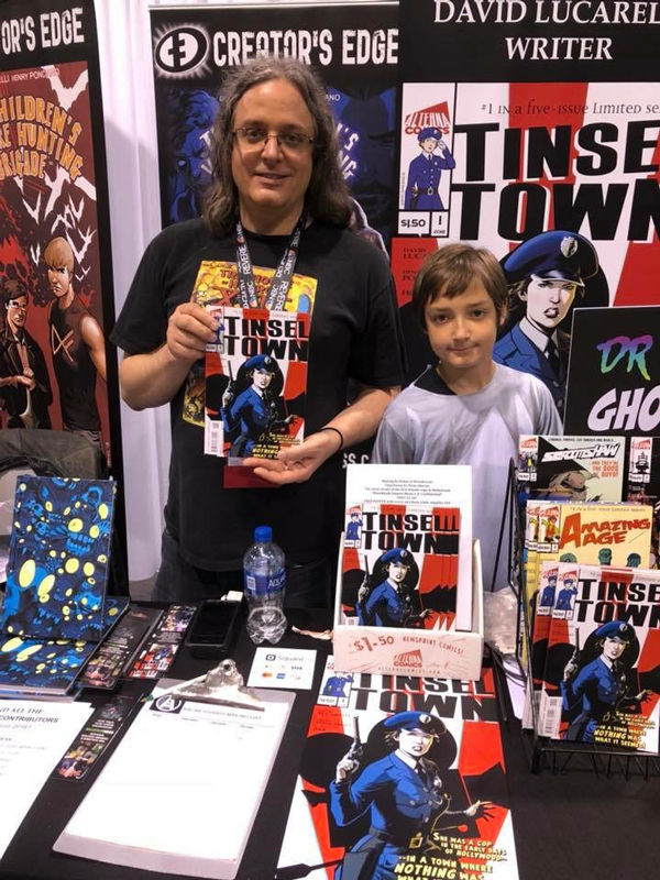 David Lucarelli is a comic writer. Tinseltown #1 from Alterna Comics hits comics shops everywhere Wednesday March 28th. He will be appearing that day at Golden Apple Comics to sign issue #1 from 10 a.m.-1 p.m. that day, and at The Comic Bug Manhattan Beach to do a signing (2-4 p.m.) and creator talk (4-6 p.m.) Saturday March 31st.
