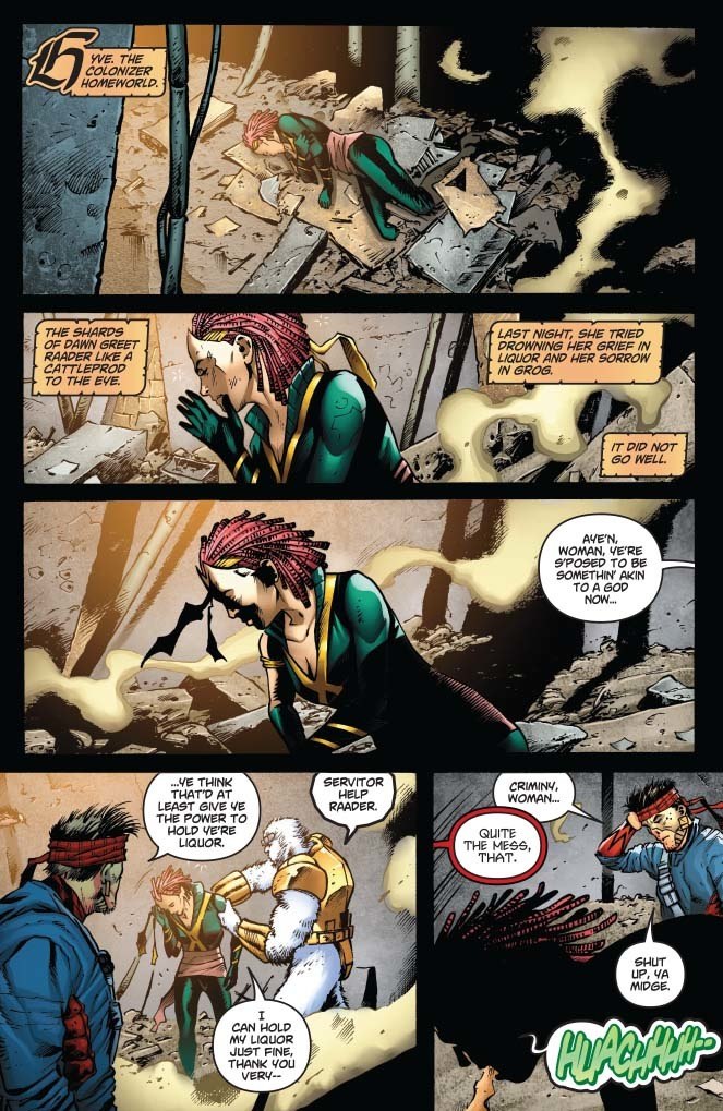 The last panel depicts the "death" of Servitor. I love how Andrea decided to go all-silhouette here. It makes dialogue and narration unnecessary.