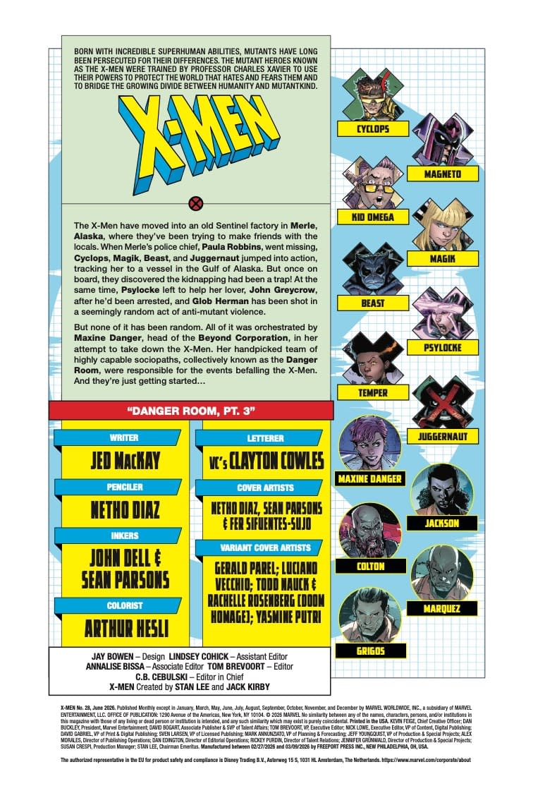 - Preview pages reveal the Danger Room has eliminated the Marauder while Maxine coldly evaluates her next targets in Alaska