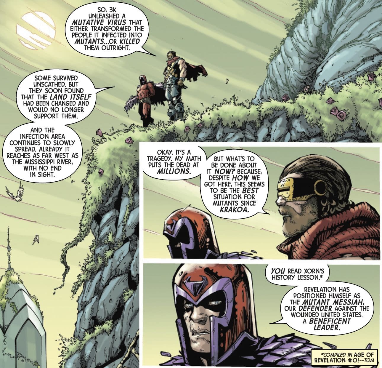 X-Men: Age Of Revelation Overture by Jed MacKay and Ryan Stegman is published today, set ten years in the future, in a world in which Doug Ramsey, the heir of Apocalypse, now rules. With Cyclops' mind from the past brought through time into his body now, in a similar way that Kate Pryde phased through time into her young body in Days Of Future Past. But what is this world? Well, we have some mutants serving Doug Ramsey, whether he has forced them to or not. But who are actually the bad guys here?