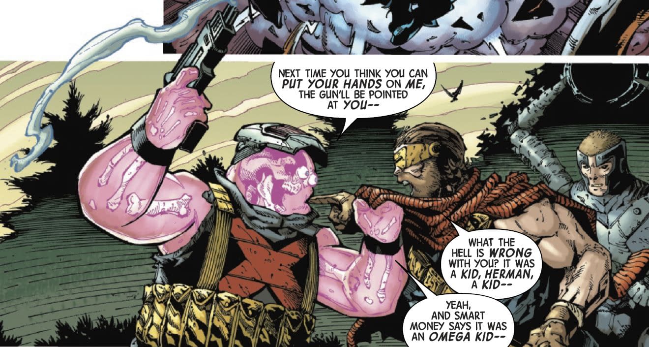 Glob Herman. A relative joke character of New X-Men and Krakoa, with rather useless powers in the round, but what powers do you need when you have a big Liefeld gun? And as Cyclops tries to catch up with this world…