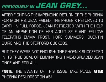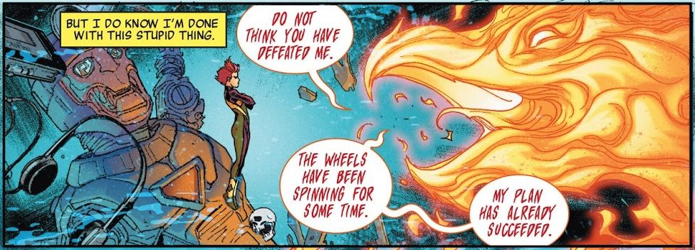Which is interesting, because as we learned at the beginning, these events take place after the events of Phoenix Resurrection #5. And in Phoenix Resurrection #5, Jean Grey rejected the Phoenix and sent it away. So how could the Phoenix's plan have succeeded? Is this an editorial error, or is the Phoenix not finished with Jean Grey just yet?