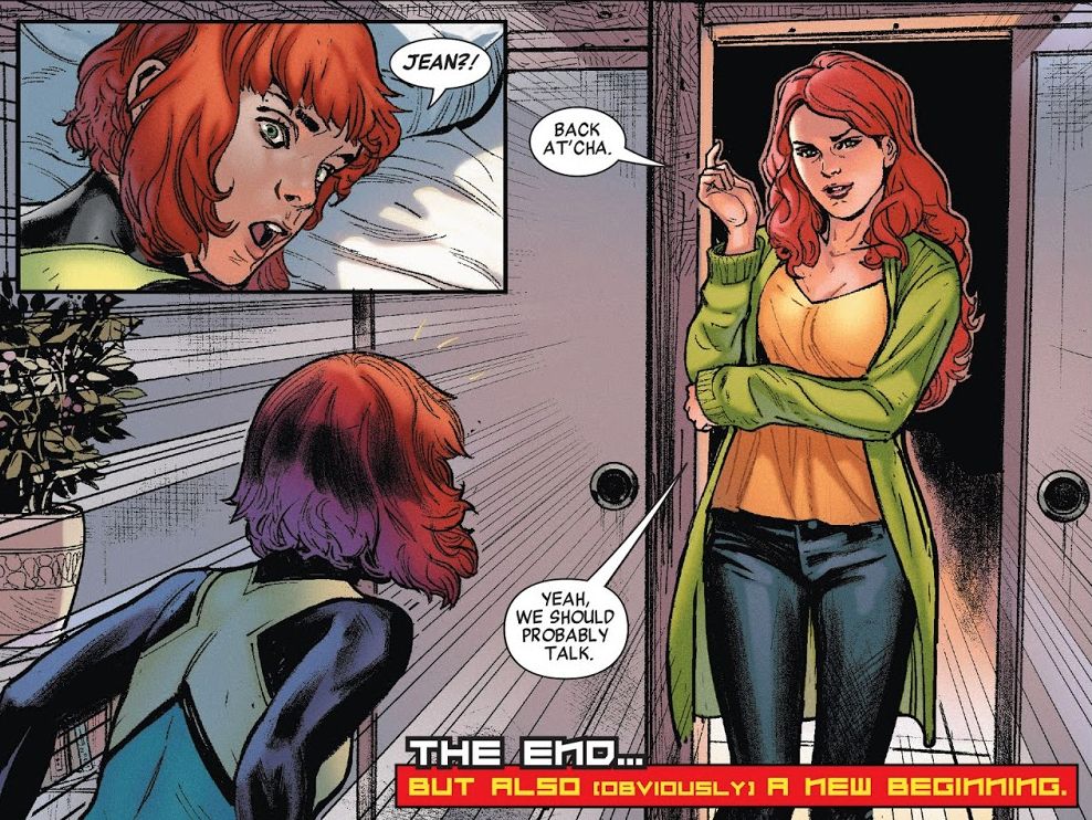 So that's it for this fun 11 issue maxi-series. The adventures of young Jean Grey, along with the other original five X-Men, will continue for a bit in X-Men Blue before the team becomes lost in space. The adventures of original Jean Grey will continue in X-Men Red. This series will make a really nice hardcover, and its tour of Phoenix-related Marvel characters should endow it with decent re-read value. We're sad to see it go, but that's the way of X-Books in the modern era, unfortunately. All Marvel books, actually.