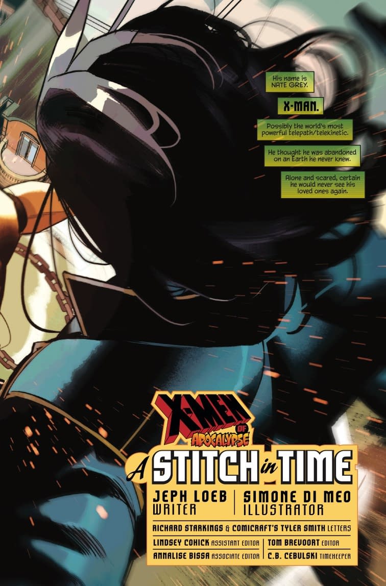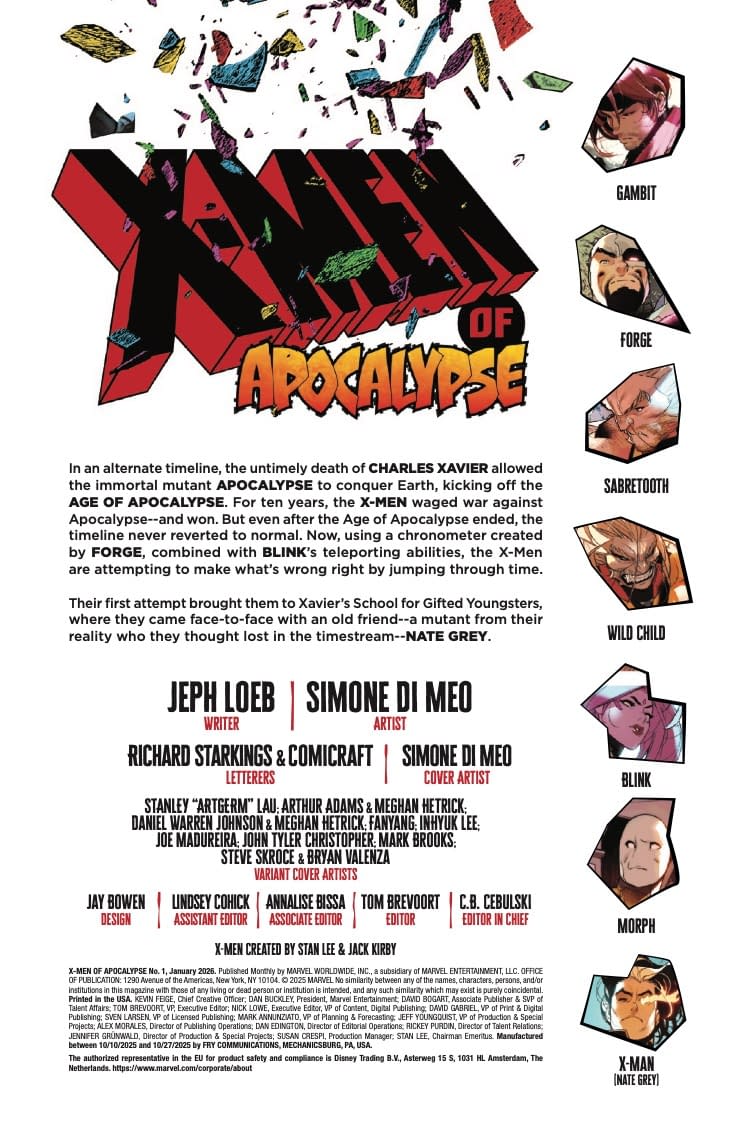 - Interior preview page from 75960621272900111 X-MEN OF APOCALYPSE #1 SIMONE DI MEO COVER, by Jeph Loeb & Simone Di Meo & Simone Di Meo, in stores Wednesday, November 19, 2025 from Marvel