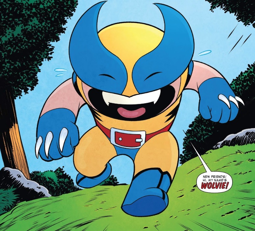 Wolvie catches a scent and beckons the Exiles to follow him into the woods as he sniffs out some pie (not a euphemism). Someone has stolen them, and Wolvie is going to get them back. He's the best he is at what he does, and, presumably, what he does it track down pie. Wolvie quickly locates the perpetrator, with the Exiles right behind him. It's Li'l Magneto, who vows to eat all fo the pies himself, making Wolverine cry. This is, without a doubt, the best version of Wolverine. Can he replace the just-returned one in the regular Marvel Universe please?