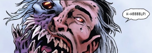 Strange is choosing weapons, getting ready for a trip to Alaska to investigate this whole Wendigo thing and take care of both Wendigo and Weapon H. Speaking of which, the proverbial **** is hitting the proverbial fan back in Alaska, as Weapon H throws down with Wendigo, who's looking a little different than usual: