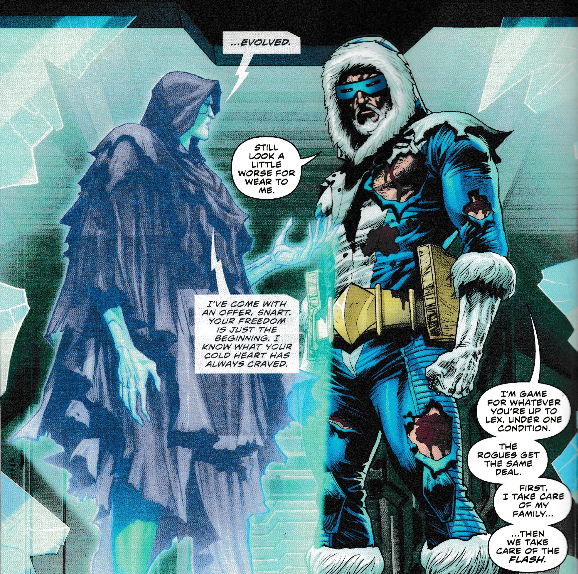 No details on Captain's Cold's offer, though he does at least want to share. And we learn that Luthor doesn't just give…