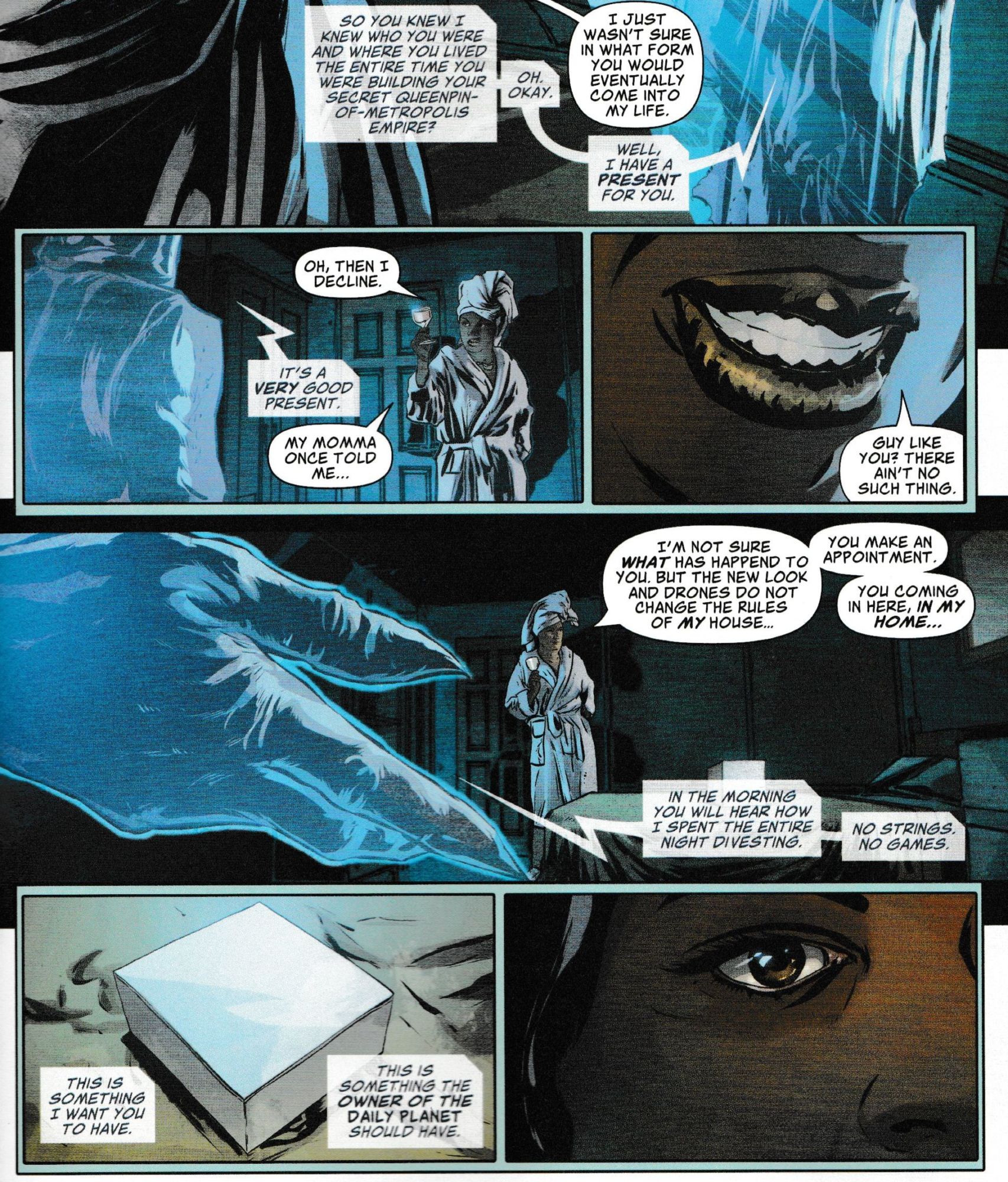 …his wife back. In Action Comics, we have one rejection to begin the issue from Leone, of the Metroplis criminal underworld.