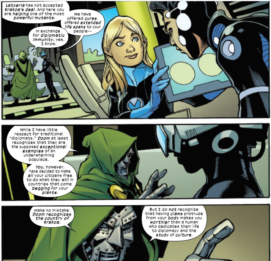 Wonder if this is how they'll handle things over in Decorum? But trust Doctor Doom to break open the Ferrero Roche for diplomatic talks in FF/X-Men #3