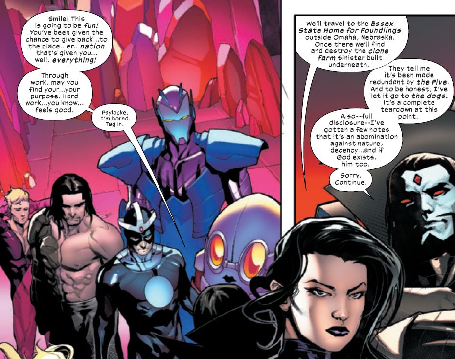 But revisitation seems to be a bit of a theme, as Hellions sees a group of murdering psychopaths sent to Mister Sinster's old pad to deal with what he left there… all those clones that he's not meant to be making anymore. He promised. Not like this anyway.