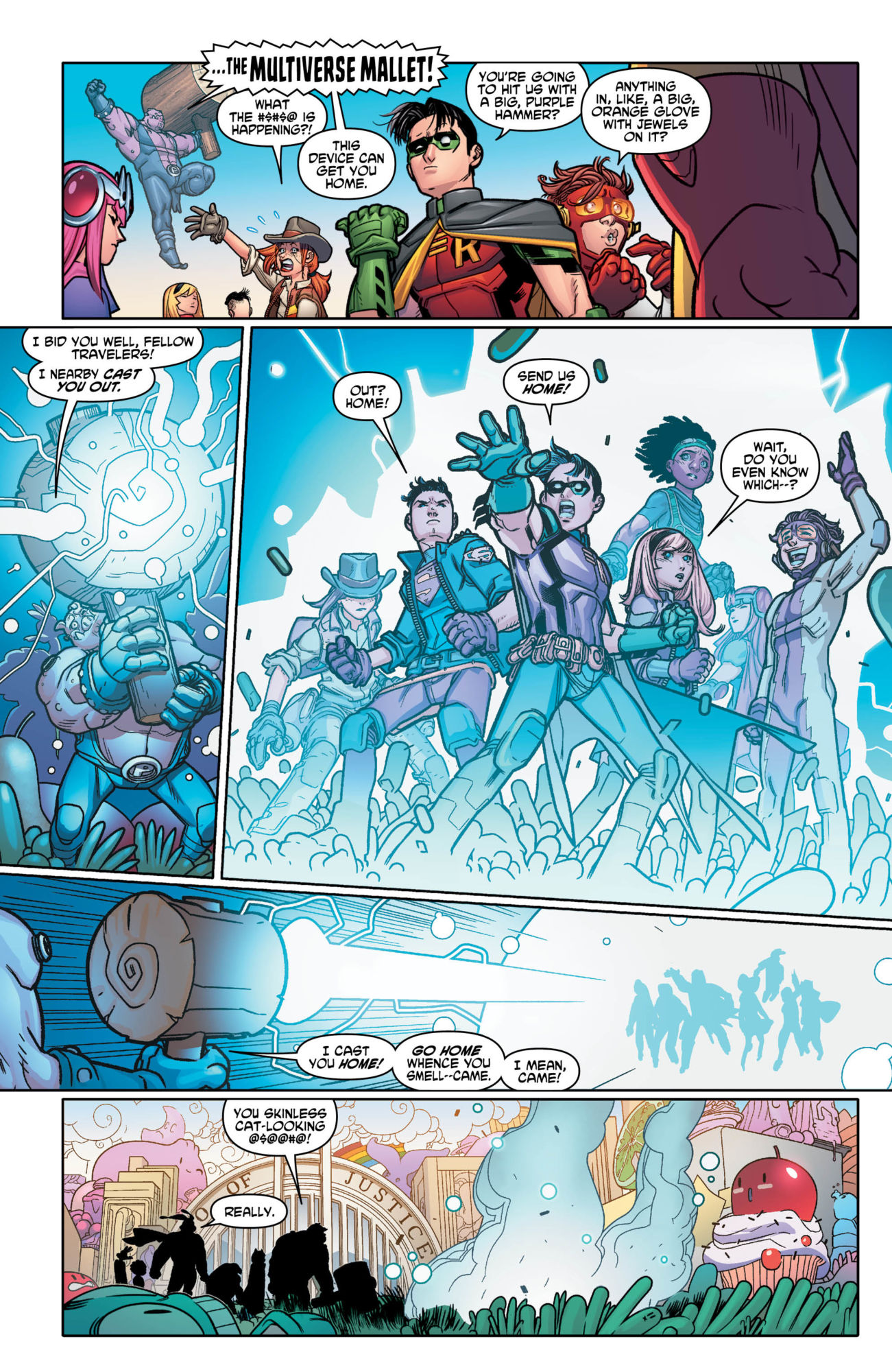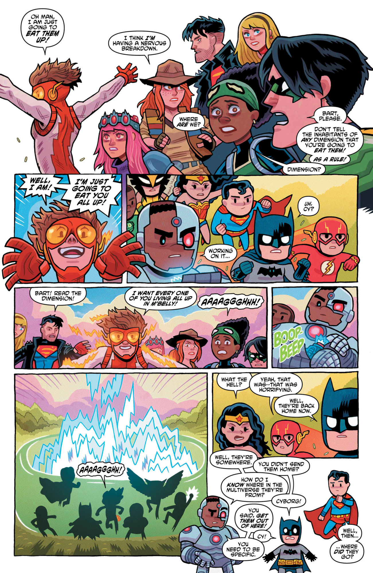 After being ejected from Gemworld at the conclusion of Young Justice #6, the team is found skipping throughout the multiverse in this preview of Young Justice #7. First, they find themselves in Earth 42 where they meet the Li'l League…