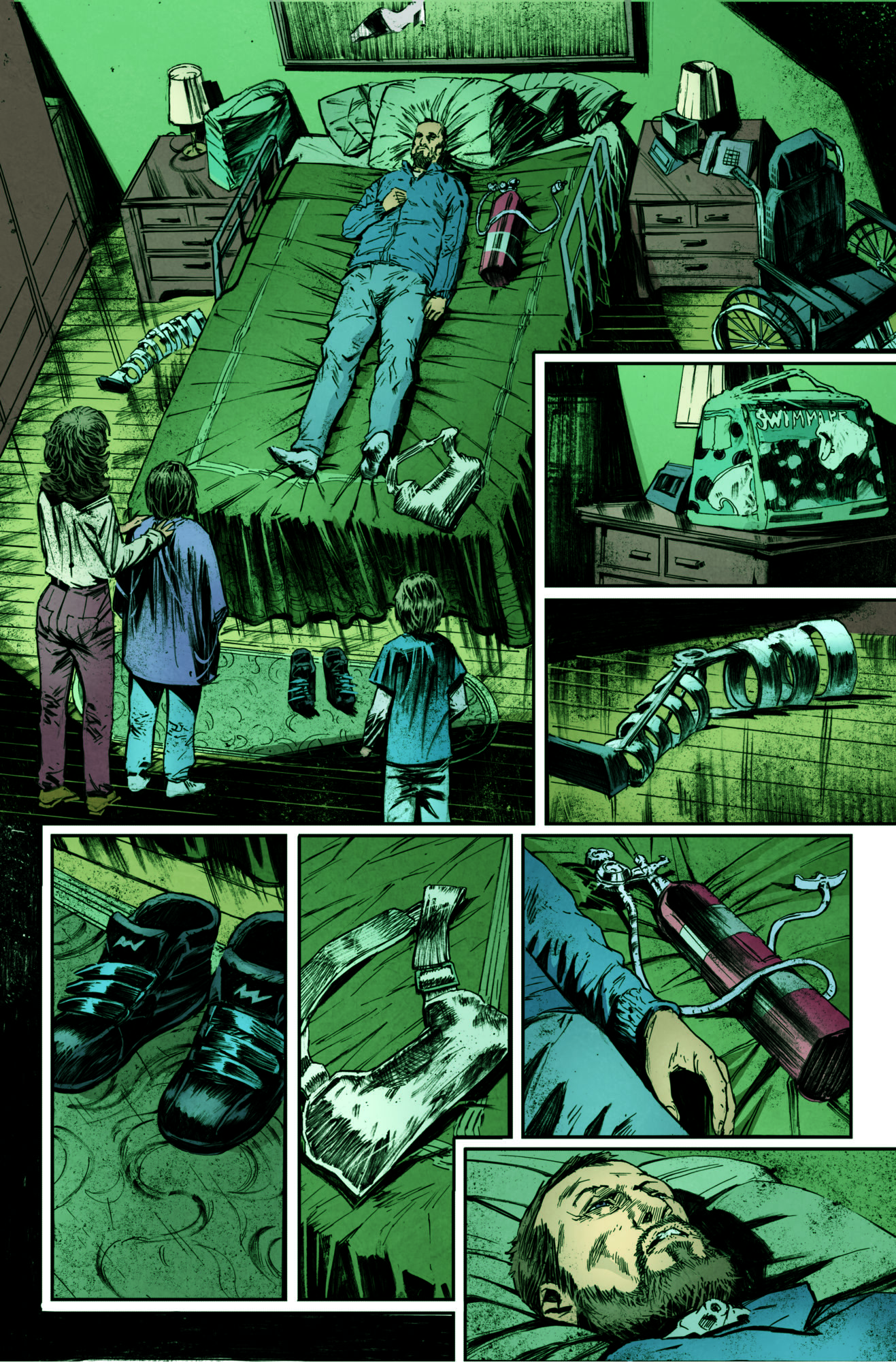 Based on Zac Thompson's true story of coming to terms with a disabled parent, THE REPLACER is a complete 64-page graphic meditation on loss, tragedy and fear told through the eyes of a nine-year-old — a horror tale about learning to walk again, even if a demon has to teach you how to do it. A bizarre mashup of IT, The Exorcist and The Diving Bell and The Butterfly, with stunning visuals by Arjuna Susini (Made Men), THE REPLACER is not for the faint of heart.