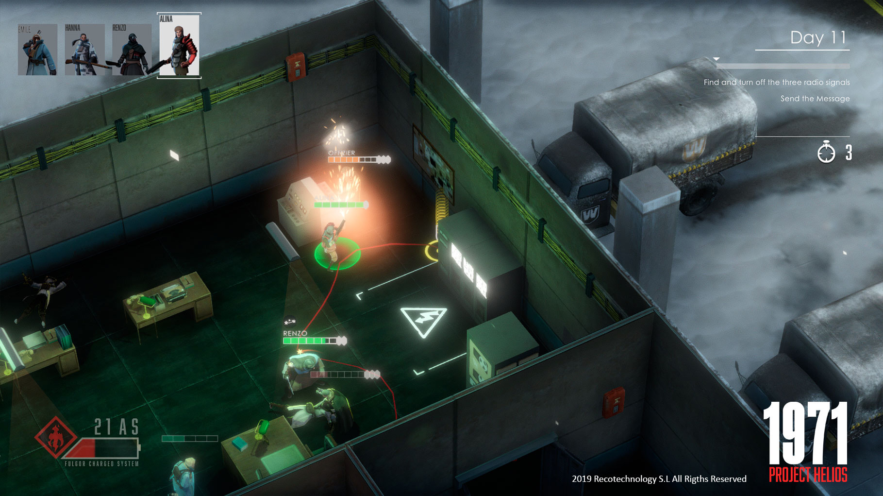 Set in a dystopian world, scarce in resources and razed by extreme cold, 1971 Project Helios is a mix of turn-based strategy and RPG where you control a bunch of different characters, forced to put their differences aside to survive in a hostile world and find a scientist who could have the key to fix the world at last. Mixing exploration, turn-based tactical combat, resource management and dialogues, 1971 Project Helios offers a harrowing and challenging experience that will put your strategic and tactical skills to the test. Players will control eight different characters who are joining efforts for a common cause: find a key scientist who was kidnapped by a powerful paramilitary society. In their struggle, they will have to face scavengers, investigate military settlements, and infiltrate the turf of a dangerous religious sect that repudiates technology. In all of this, players will have to use their resources carefully, improving their characters' skills, and fighting a wide variety of enemies in thrilling tactical combats.