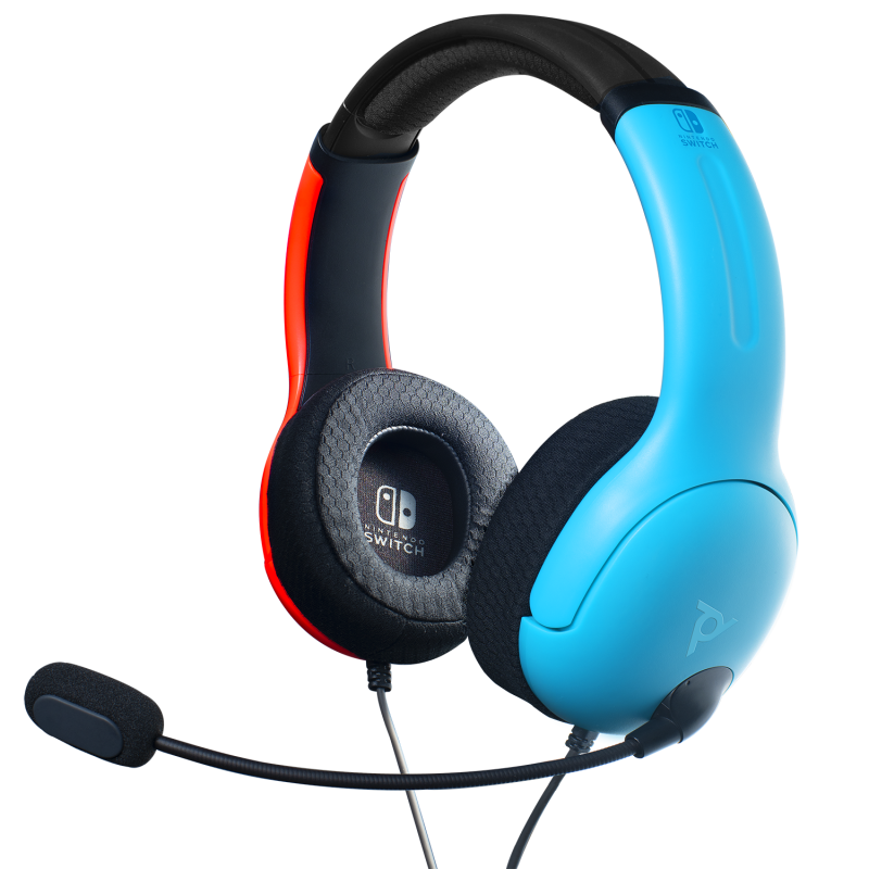 The last of the Nintendo Switch items we got this year was the LVL 40 Wired Stereo Gaming Headset. This was made to be the ultimate gaming headset for Switch owners, as they went to the same extent they would for PC or other consoles. You have soft and breathable ear cushions that will give you several hours of gameplay. May not be the cooling gel some are used to, but it serves well. The headbar is made of the same material and rests well on the crown. You have an audio dial on the back of the left ear with 40mm audio drivers. Which comes with a bi-directional noise-canceling mic that you can mute by flipping it up. This gives you the best in-game chat possible on the Switch for titles like Fortnite. It's a small and compact design, much like the Switch, with the familiar red and blue colors to match the joy-con positions. I recommend it if you'd like to get something lightweight that matches up with the console.