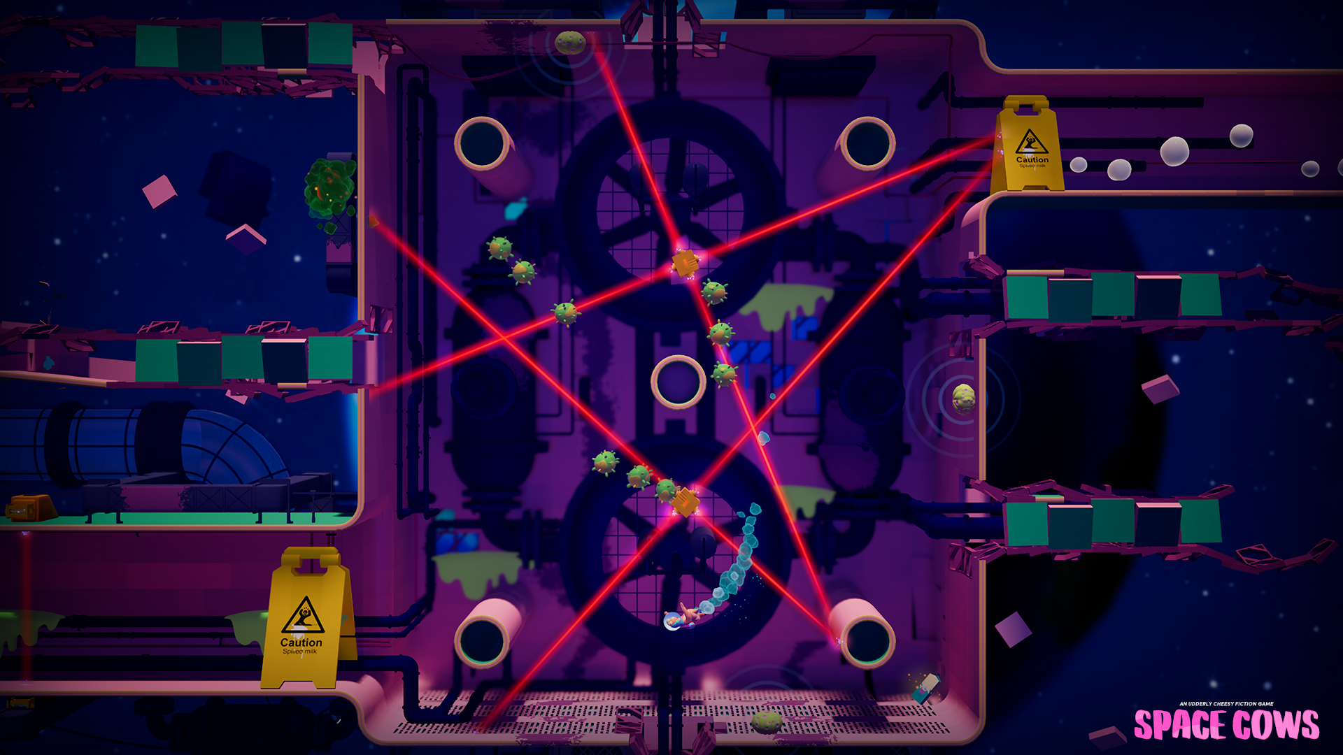 Sometimes, you get a game that basically explains itself in a nutshell before you pick it up. Like when we tried out Space Cows at PAX West. This game really doesn't need a ton of explanation, as we weren't given much when we played the demo. You're a naked human in space tasking to save his beloved cows from an alien/mutant infestation within a milking space station. It's one of those games that's just stupid fun and makes you want to play it just to relax. Sadly, you don't do much relaxing as this is a really challenging game that will have you working your hardest twin-stick skills to make it work.