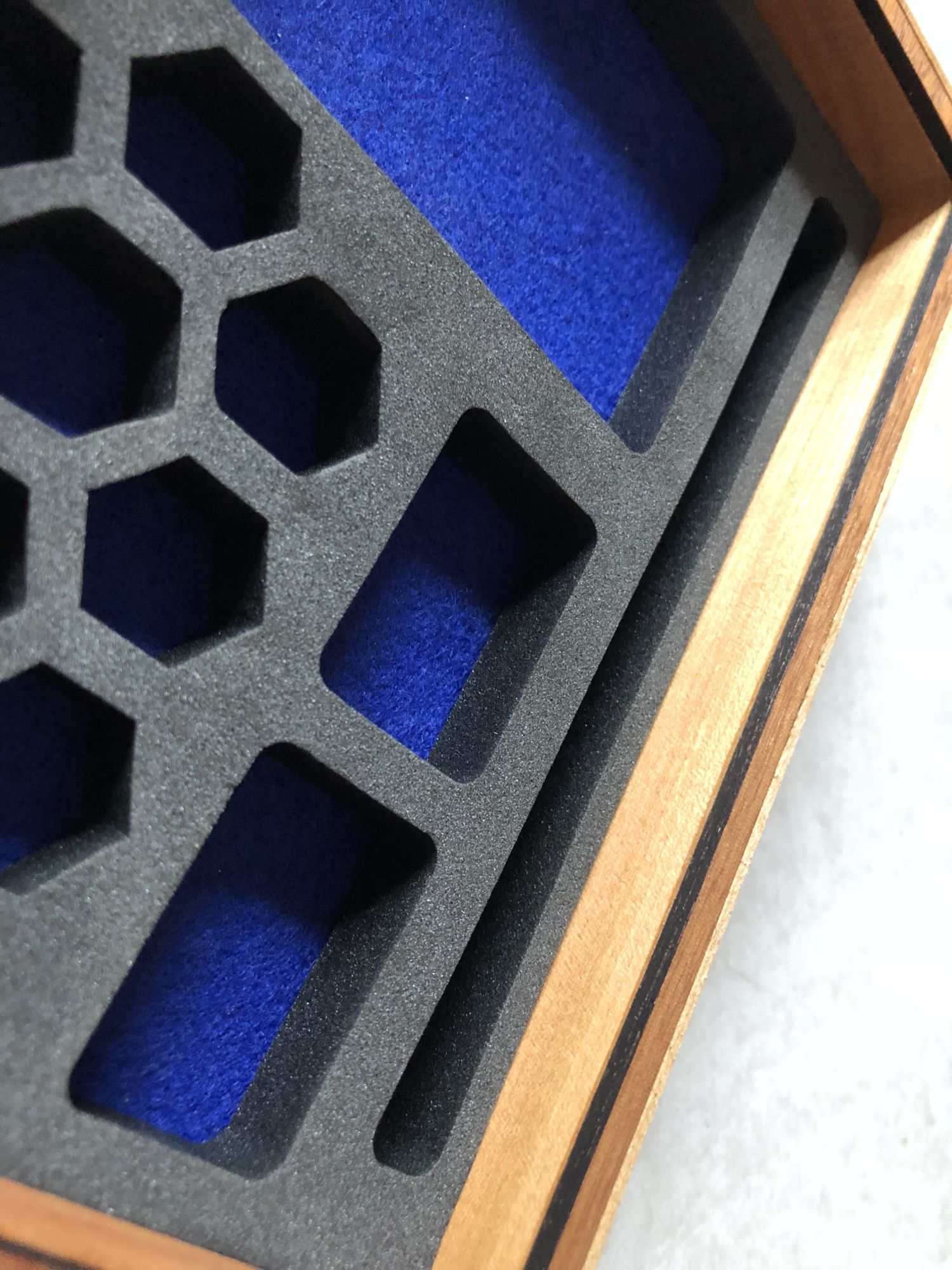 When you open it up, you immediately see the fine craftsmanship that the Elderwood Academy put into the book. The way that what is technically the lid secures into place with the chest, the way the wood has been carved out and designed with a two-color mix, the placement of the foam inside to make sure everything is secure and save to travel with. This is a great design that looks complex but really isn't.