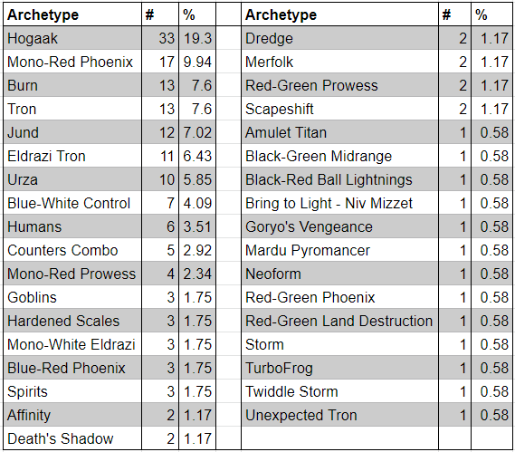 Despite this, out of the 171 decks that made it to Day 2 of the Modern tournament in Minneapolis, 33 of them (over 19 percent) were Hogaak-centric. To put this in perspective, 17 decks out of the 171 were of the second-most prevalent archetype, Mono-Red Phoenix. This begs the question: is Hogaak itself bad for Modern format diversity? With MagicFest Birmingham on the horizon (kicking off on August 16th) in the United Kingdom, the Modern metagame Will once again have a chance to test Hogaak players' mettle, and while it's improbable that much will affect the Modern metagame in the course of a week, who knows? Someone might find a technical answer to the threat that is the Arisen Necropolis. Furthermore, if Hogaak continues to prove a menace to Modern, Magic: the Gathering Modern authorities may ban him entirely with their announcement on August 26th.