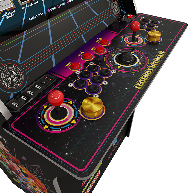 Professional, arcade-quality controls, which include two joysticks, two spinners, a trackball, and two pairs of six action buttons make the amazing games from Disney, Atari, The Tetris Company, Data East, and other top publishers play their best. Not to be outdone, the high-definition monitor and down-firing stereo speakers make these games look and sound incredible as well. Of course, the Legends Ultimate is so much more than what's built in. As The Connected Arcade, the Legends Ultimate is online-enabled. From feature updates to game streaming to leaderboards and so much more, the possibilities with this versatile platform are limitless. The options don't stop there either. Through its BYOG and APL functionality, you can play your digital PC games, as well as connect a variety of HDMI, Bluetooth, and USB-based devices and consoles for access to an even larger selection of titles to play. It's a platform that grows with you.