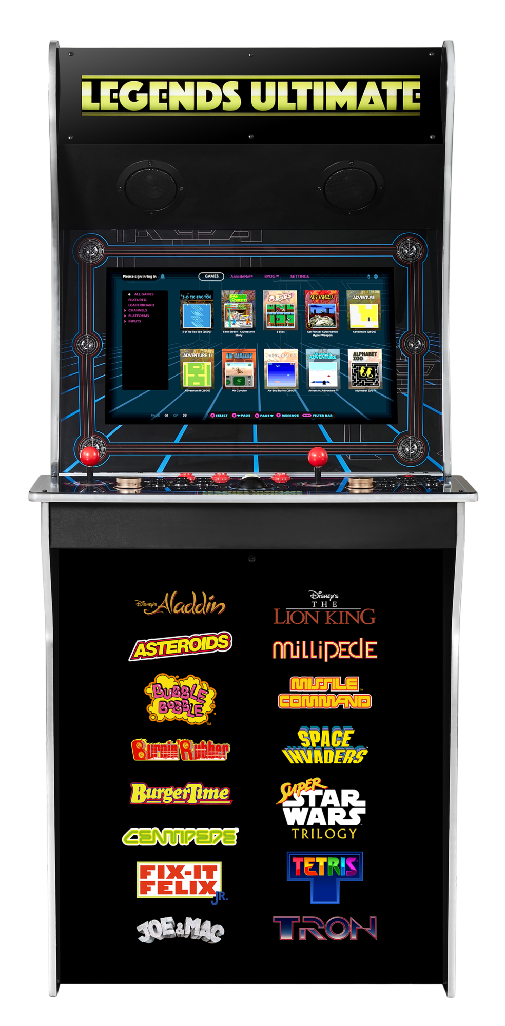 If you want to enhance your gaming experience even more, you can add to your games list with titles from ArcadeNet, an ever-growing subscription game library. Every game is optimized for the Legends Ultimate Arcade's high-performance hardware and arcade quality controls. BYOG™, which stands for Bring Your Own Game, allows you to play even more games, including by streaming your favorite PC-based titles from the top digital distribution platforms from our cloud servers or your home computer. With weekly firmware releases, the Legends Ultimate is constantly evolving. Among the major evolutions has been the introduction of eSports to retro games with the AtGames Leagues and Leaderboards (ALL), voice chat, friends lists, and the ability to stream gameplay directly to popular streaming services. No other home arcade product comes close to these and the many other features made possible by the Legends Arcade Platform family of products.