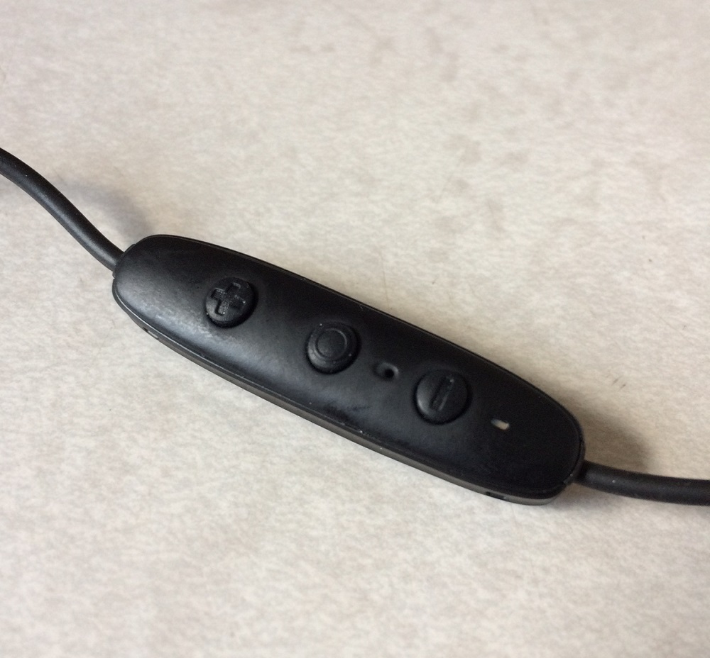 The Bluetooth version comes with your standard audio interface controls. The middle button powers them on, serves as the connection point for the Bluetooth signal to pair, and serves the additional functions of whatever phone you're using. The volume controls are clearly marked out, and the microphone is about as pitch-perfect as you can get in a Bluetooth set. The small white indicator serves as the power light as well as battery level. The unit is a little bigger than others like it, but that's primarily because it serves as the main charging spot for the battery.