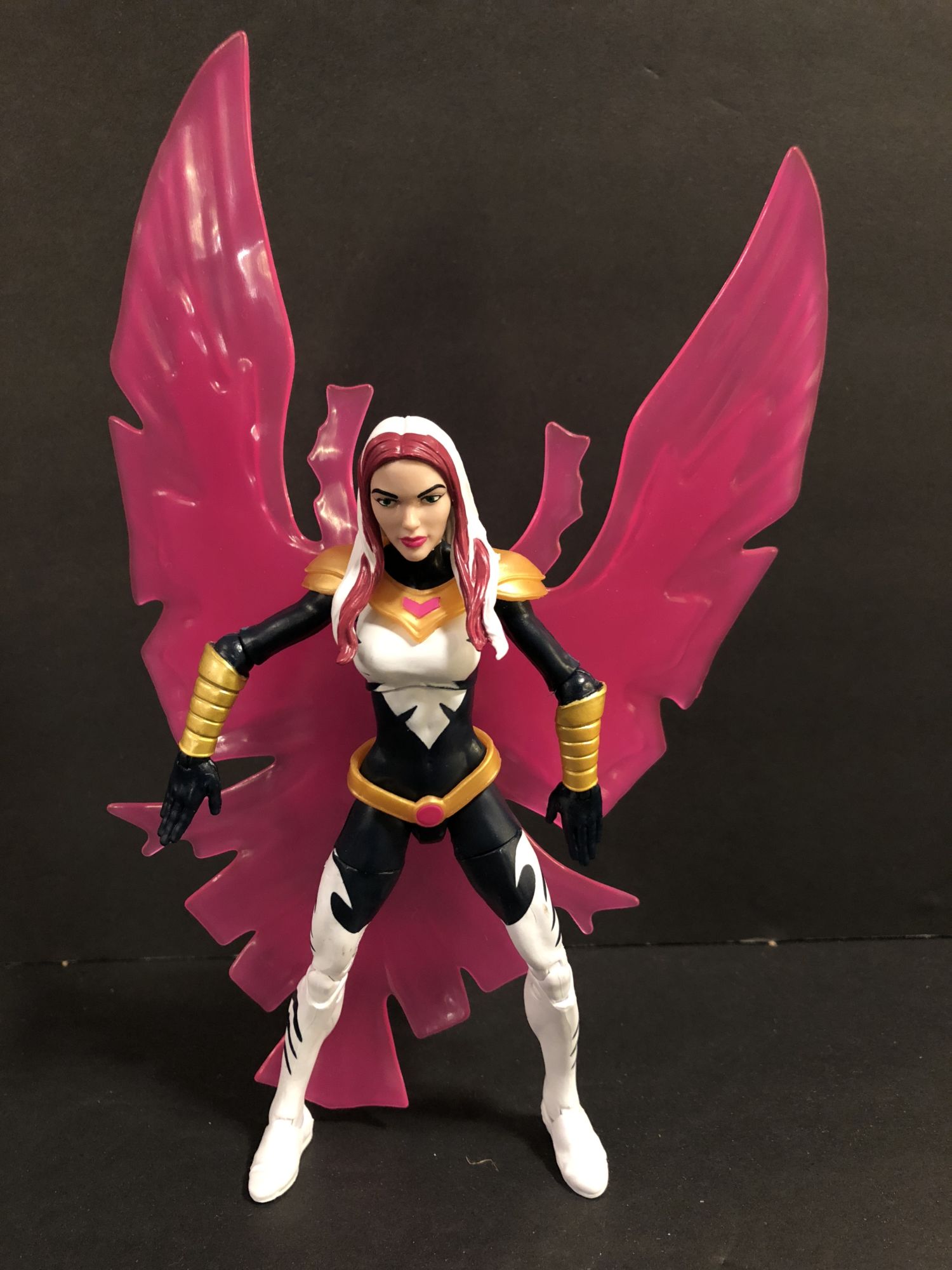 Let's start with the comic figures. Songbird and King Cobra are the new figures of the three, with an updated Taskmaster to boot. Songbird is on the female buck we have seen as of late in this line, which is a good thing. She is easy to pose and stands pretty well — as long as you don't have her wing effect attached. Then she gets a bit weighed down onto the backs of her feet in certain poses. It also doesn't like to stay very straight. It looks cool, but ends up being a bit cumbersome.