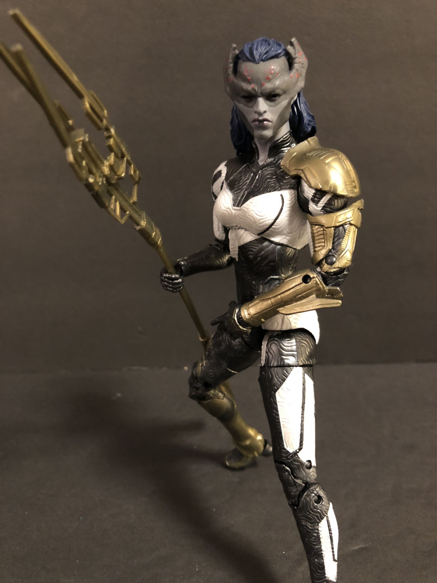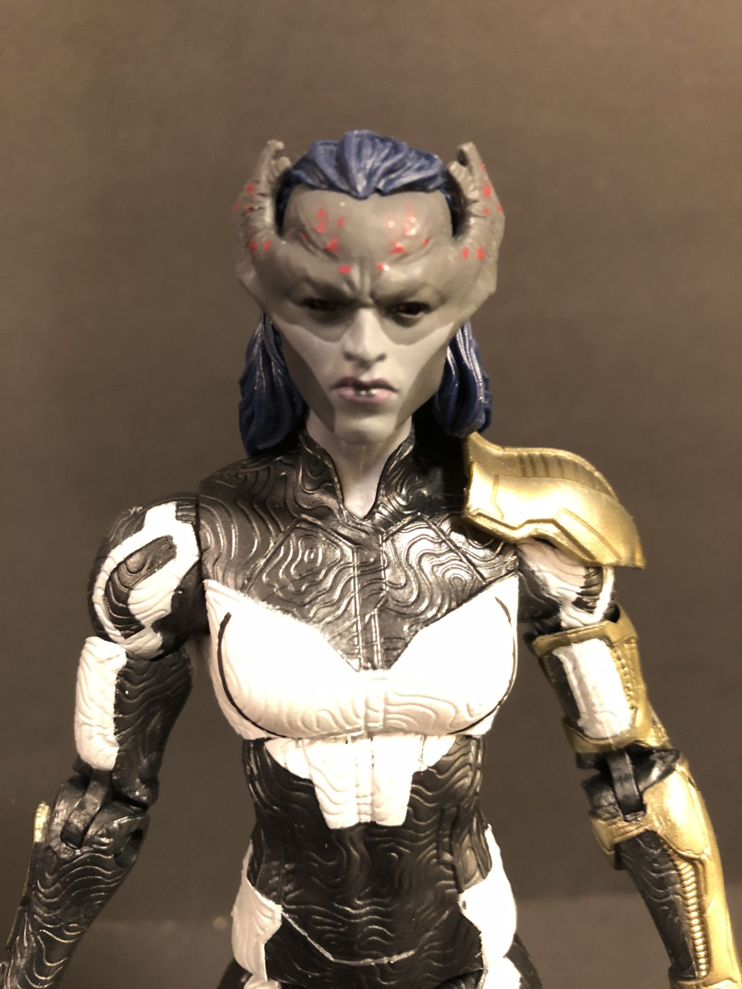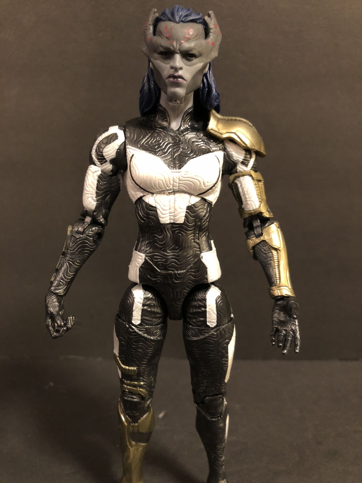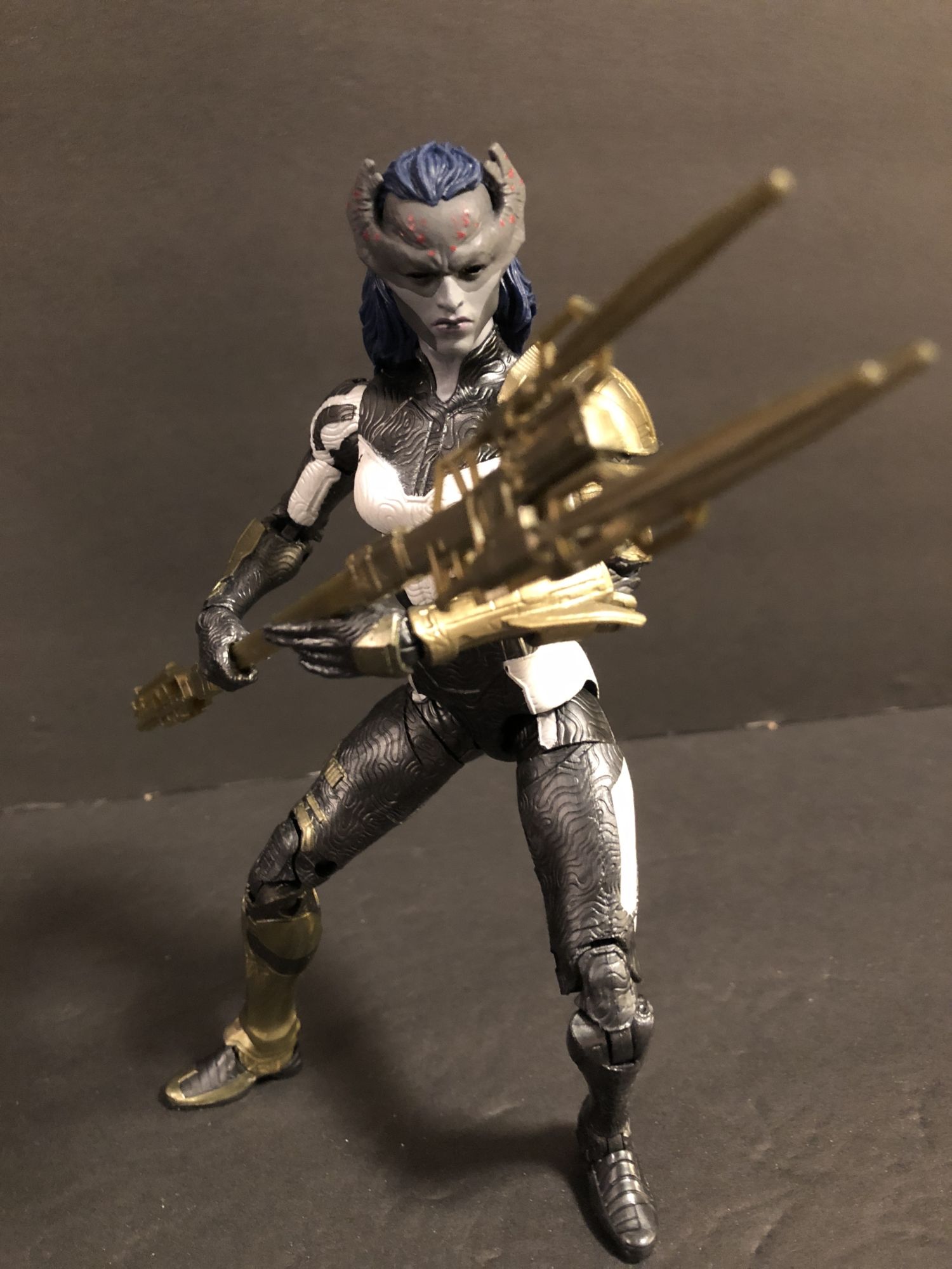 Now, the MCU Infinity War figures. Yes, there is another Iron Man figure. This is, unfortunately, the worst figure of the wave. It feels light and cheap, and while it features interchangeable hands, those hands are molded and locked in place. It makes posing the figure awkward and made me hate the thing. The other three, however, are great. Proxima Midnight is as tall as the BAF and features a great textured look with the coolest sculpt of the four. She looks menacing and tough as nails. Great figure.
