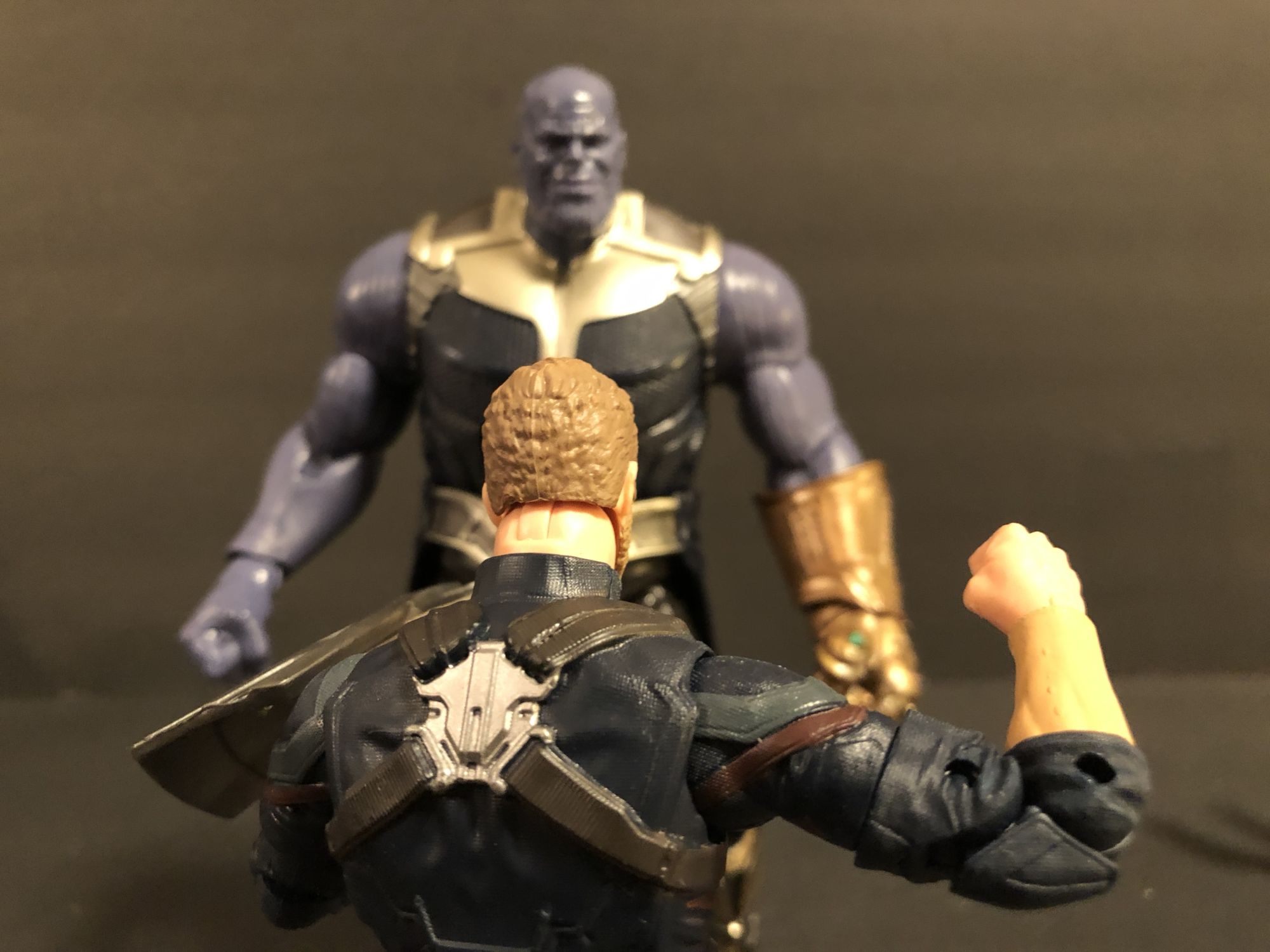 Captain America may be one of the better ones they have ever done. No, the likeness is not perfect, but it is closer to Chris Evans than past figures have been. The joints on mine are just the right amount of lose for easy posing, and his new arm shield is pretty easy to get him to hang on to. Spider-Man on the other hand has two major issues- stiff as a board and is desperate need of an extra set of hands. I love the Iron Spider suit, it is a great look. But man does he look weird with two thwip hands constantly. A real shame there.