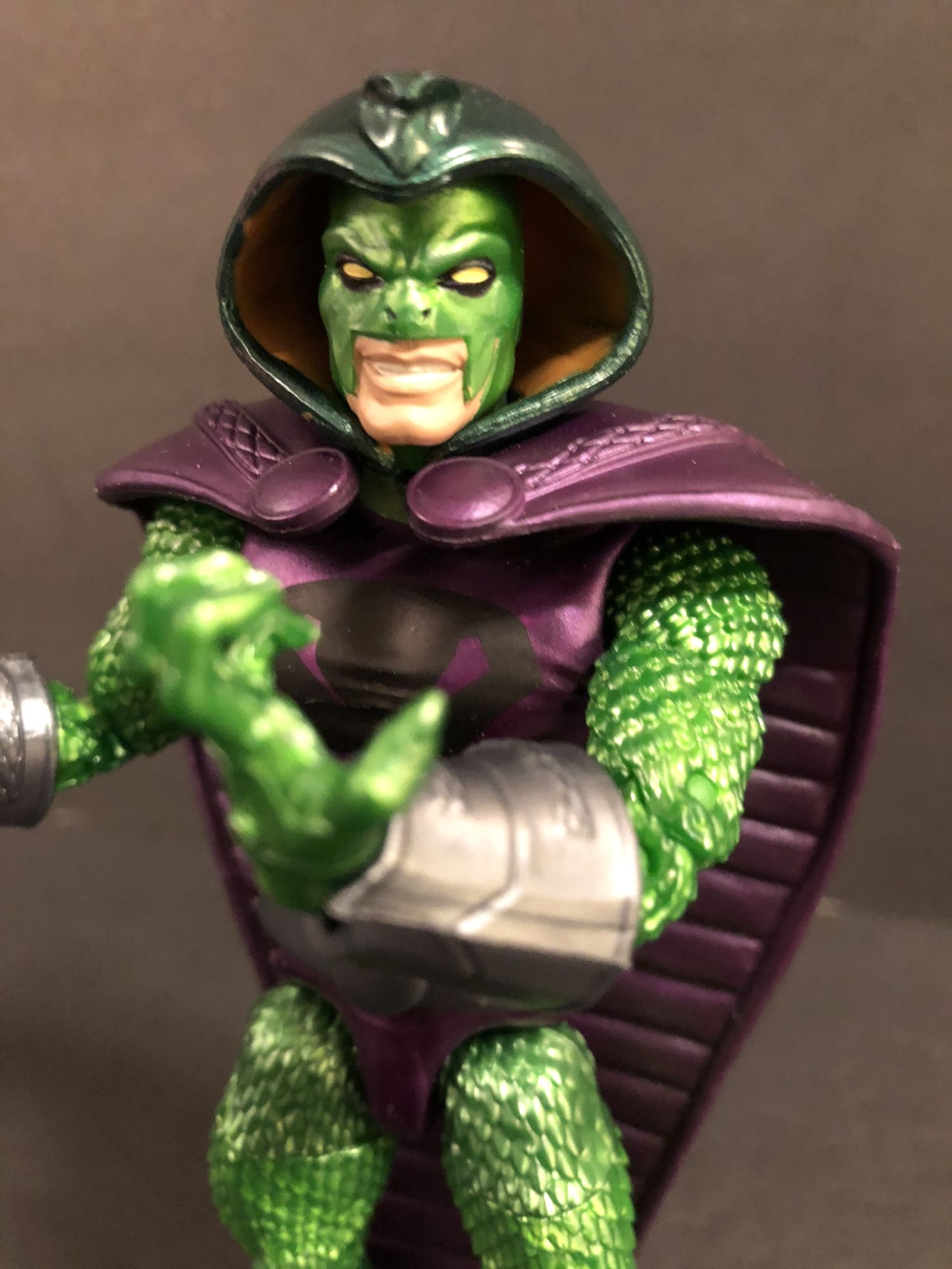 King Cobra should be pretty familiar to collectors who have the latest version of Green Goblin, as they reuse a lot of the parts here. The Serpent Society leader gets a really awesome headsculpt and cape, though, and they really make the figure pop on a display. He is not all that exciting to pose, however. A welcome addition for sure, but a little boring overall.